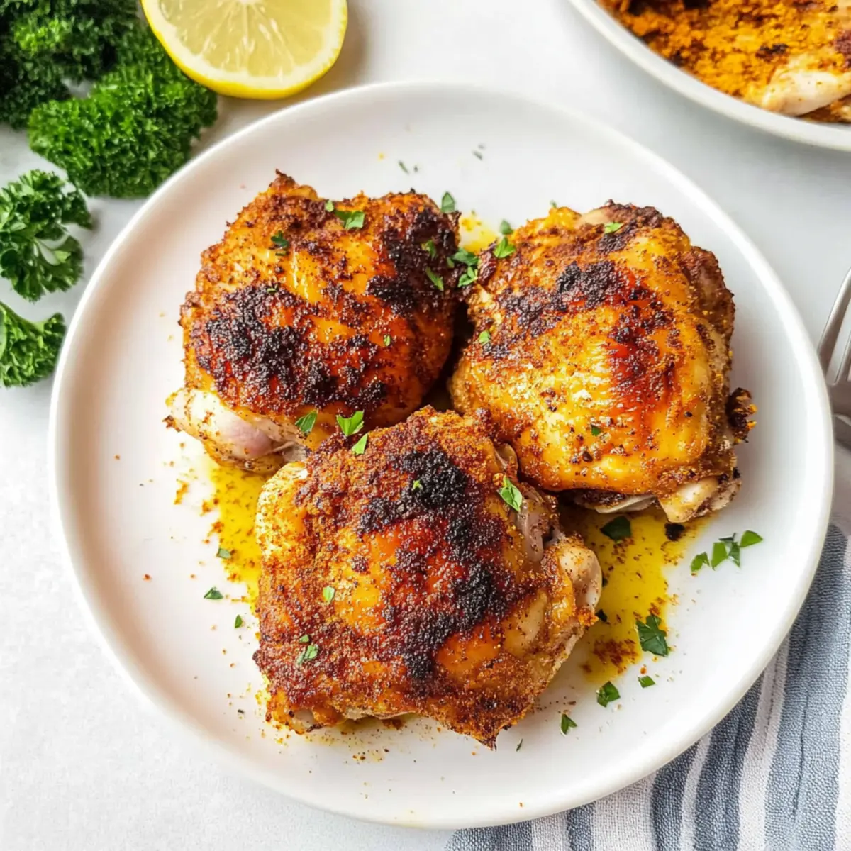 Barbecue Flavor: Use a barbecue seasoning blend instead of the original spices. This variation adds a smoky, tangy taste, transforming your chicken thighs into a backyard barbecue favorite.
