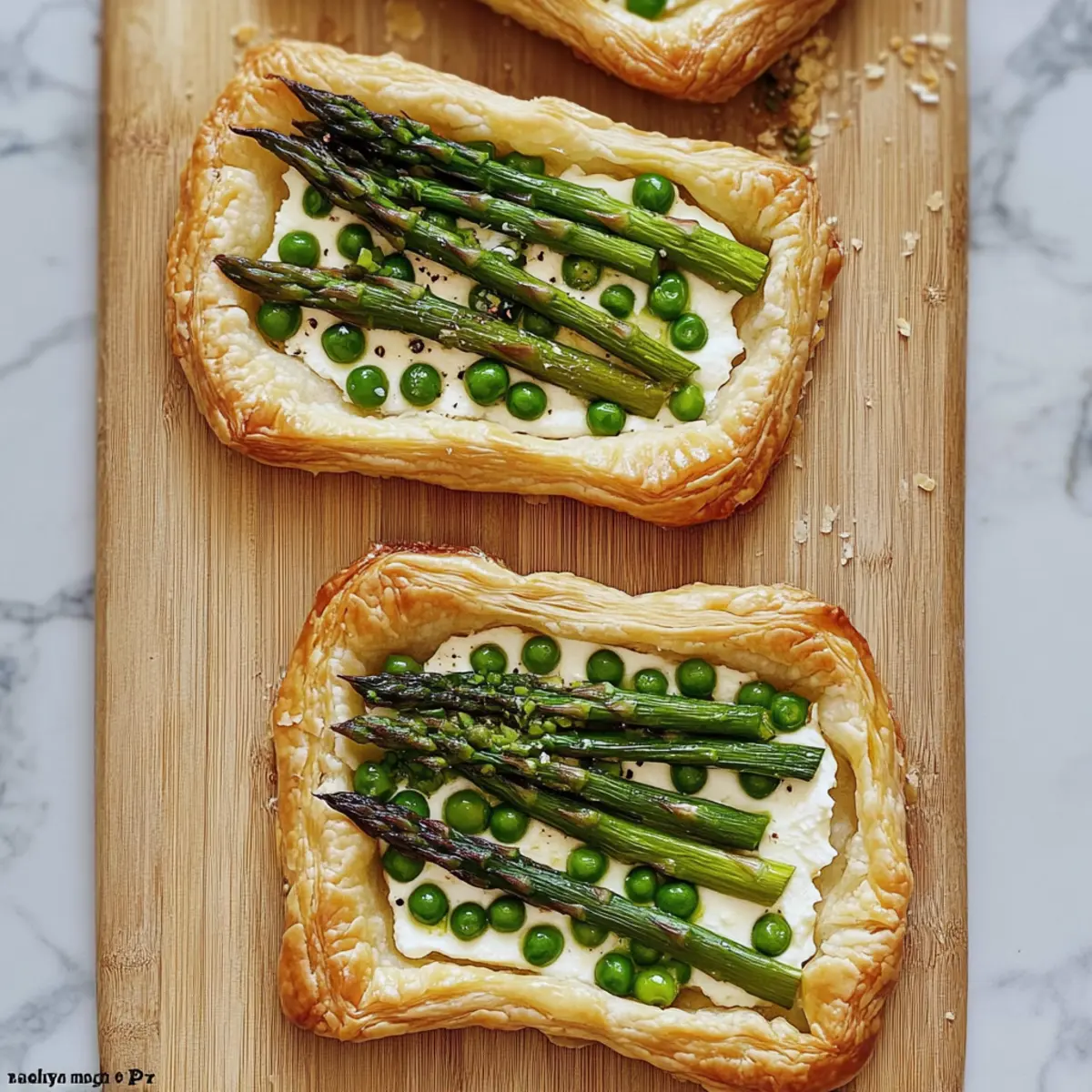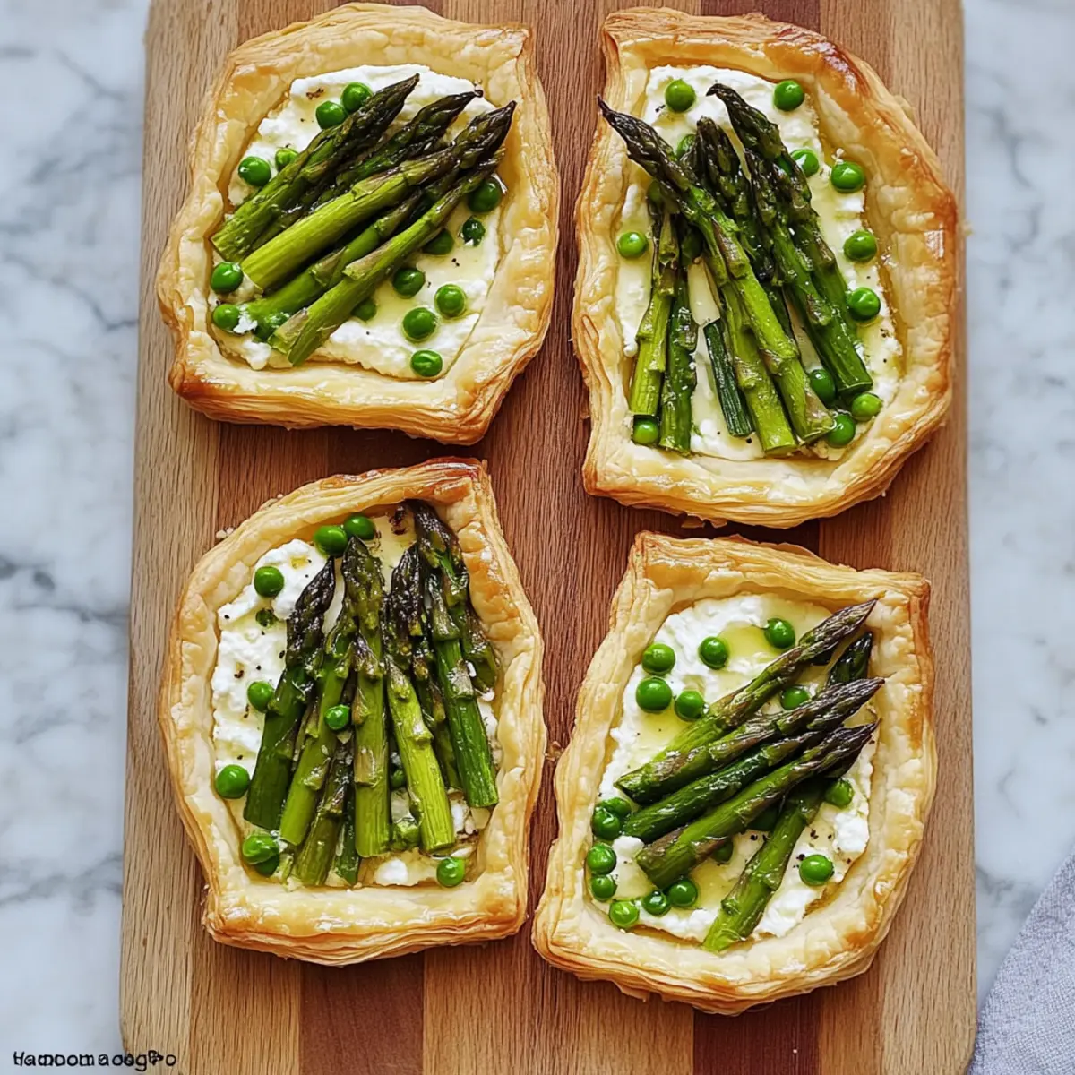 Fresh, Vibrant Ingredients: Each tart bursts with the fresh flavors of asparagus and peas, perfectly complemented by creamy ricotta—it's a colorful dish that catches the eye and pleases the palate.