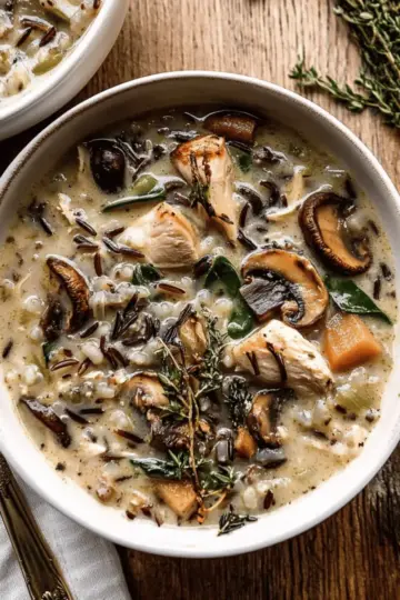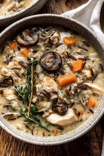 Cozy Wild Rice Chicken Soup with Roasted Mushrooms Delight