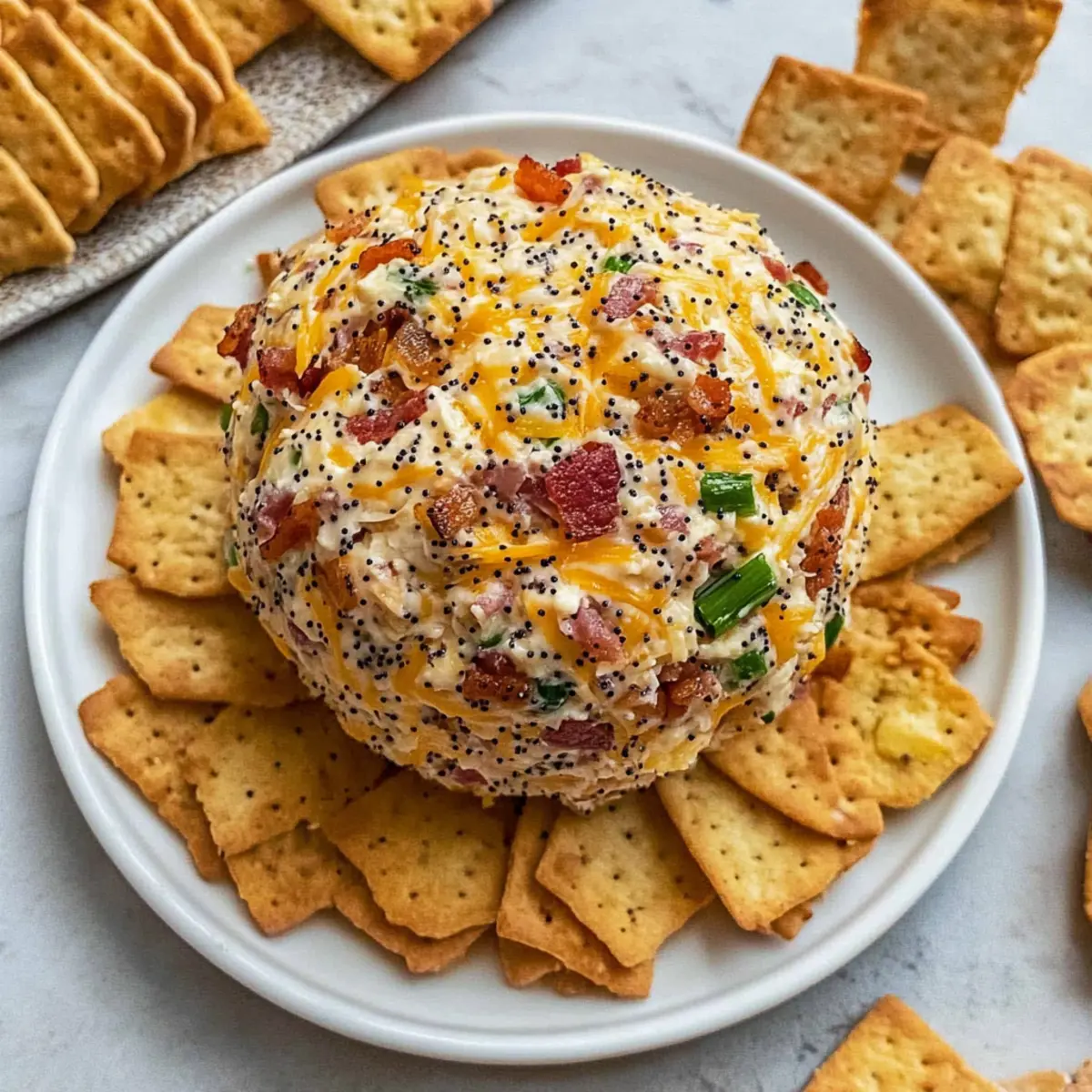 Assorted Crackers: Choose a variety of textures and flavors to perfectly complement the creamy cheese ball and provide a satisfying crunch.