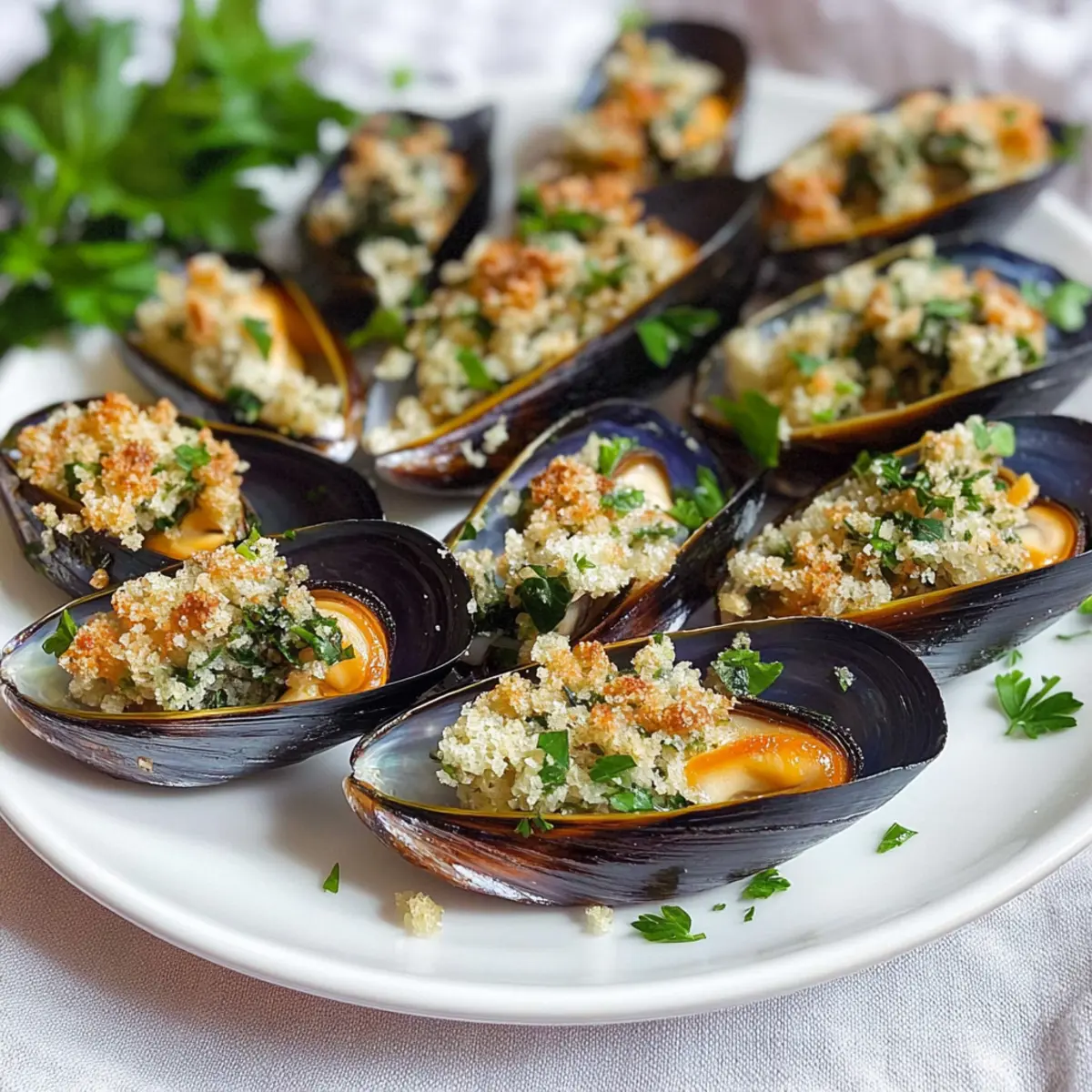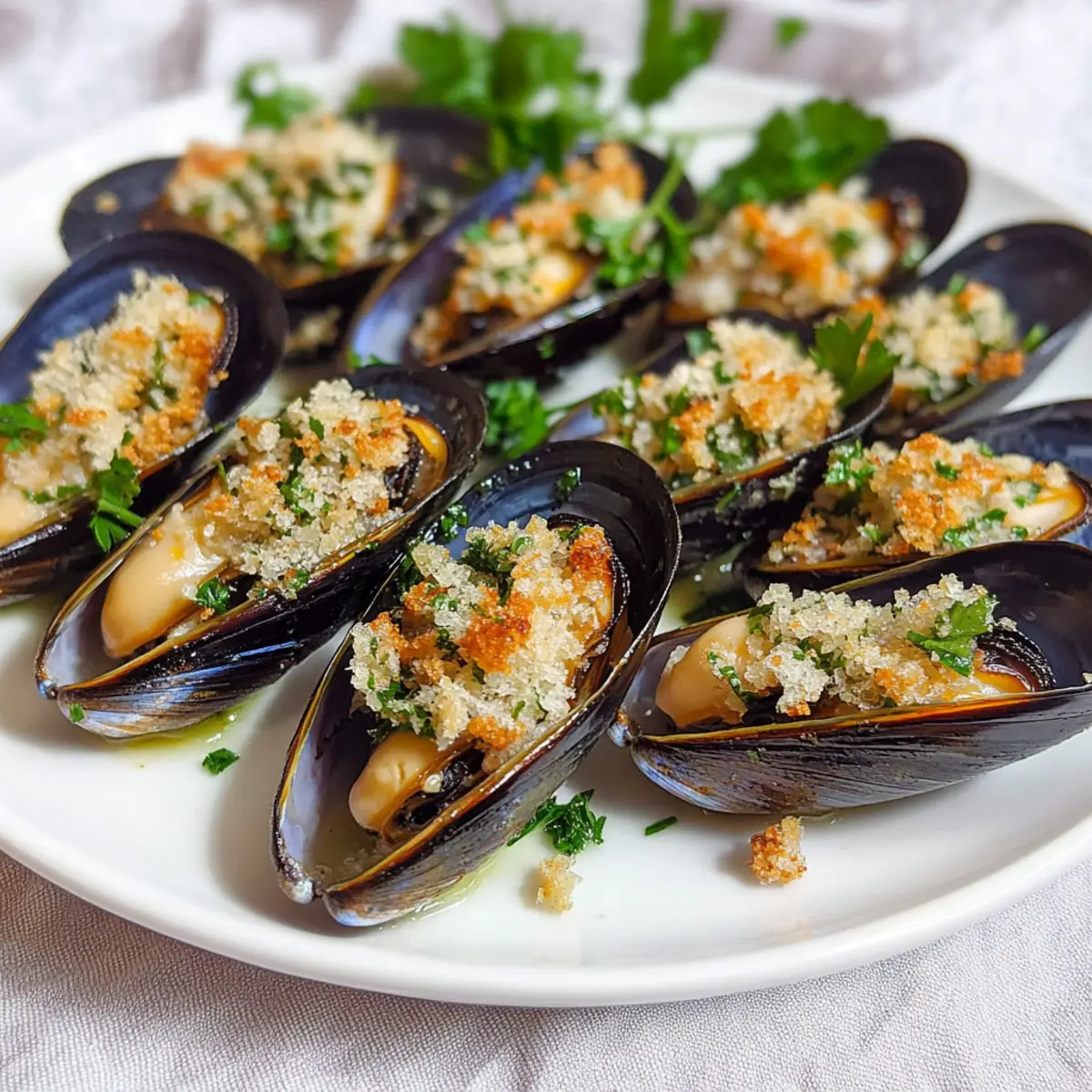 Savor Easy Baked Mussels with Garlic Crunchy Topping