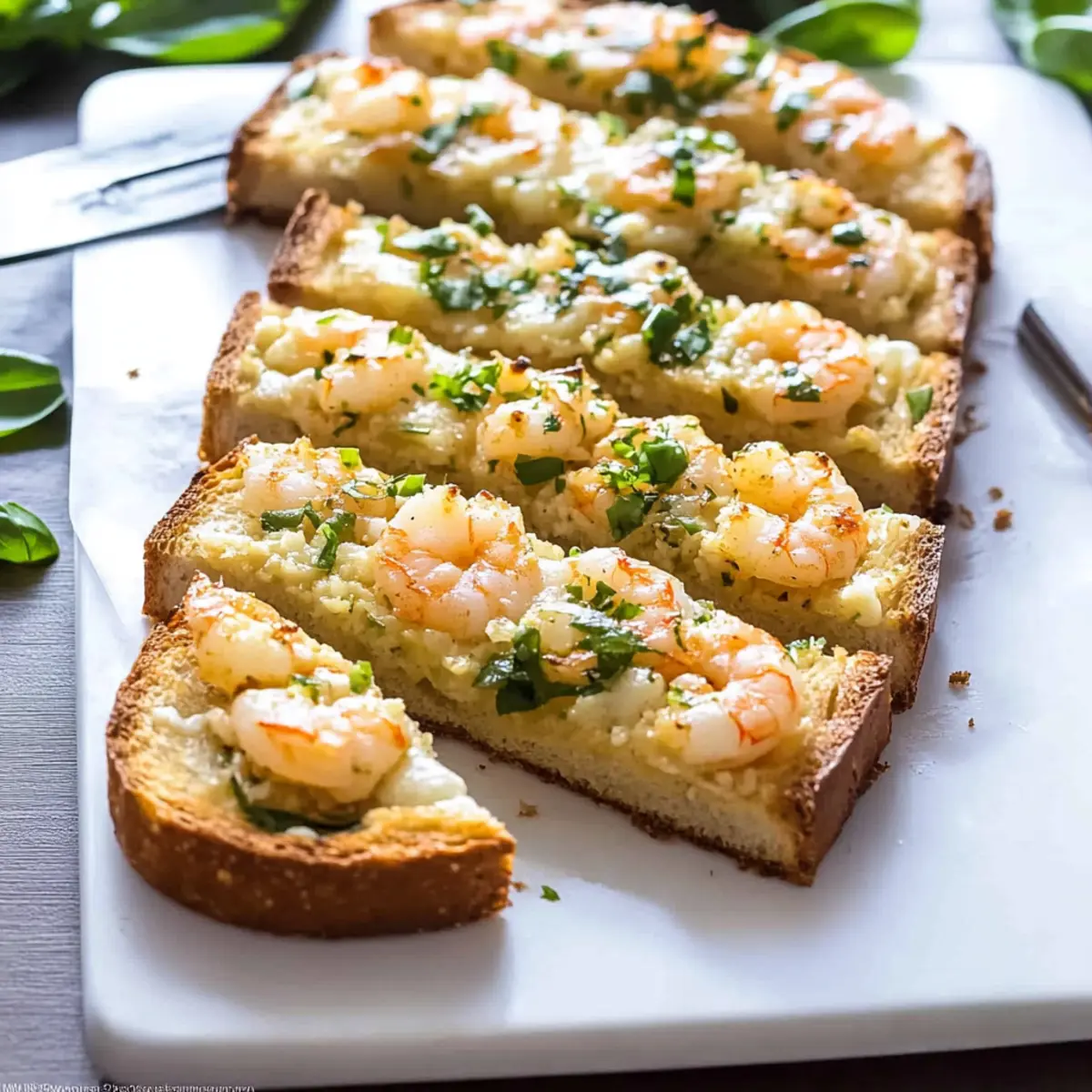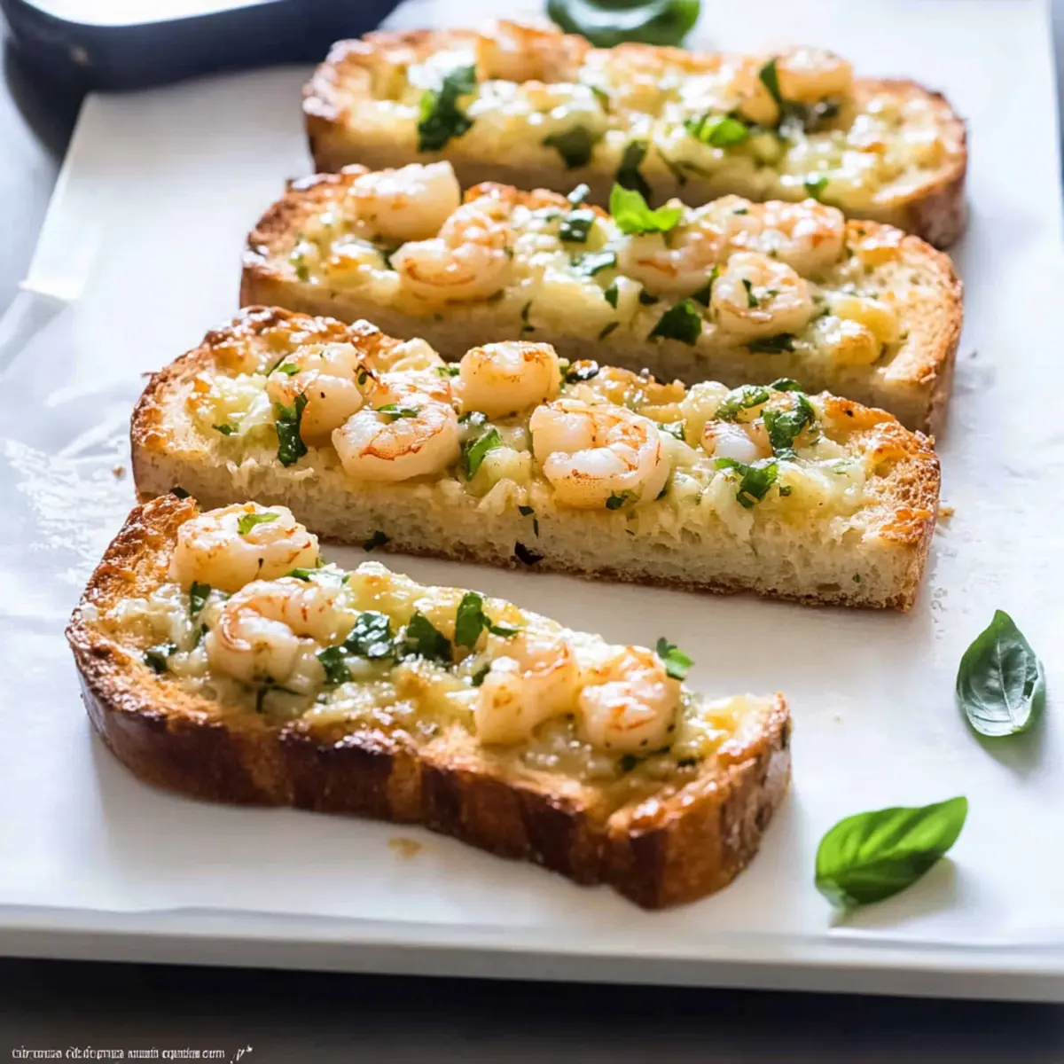 Sourdough Option: Substitute ciabatta or baguette with sourdough for a tangy flavor and chewy texture. It will amplify the savory notes of the shrimp topping.