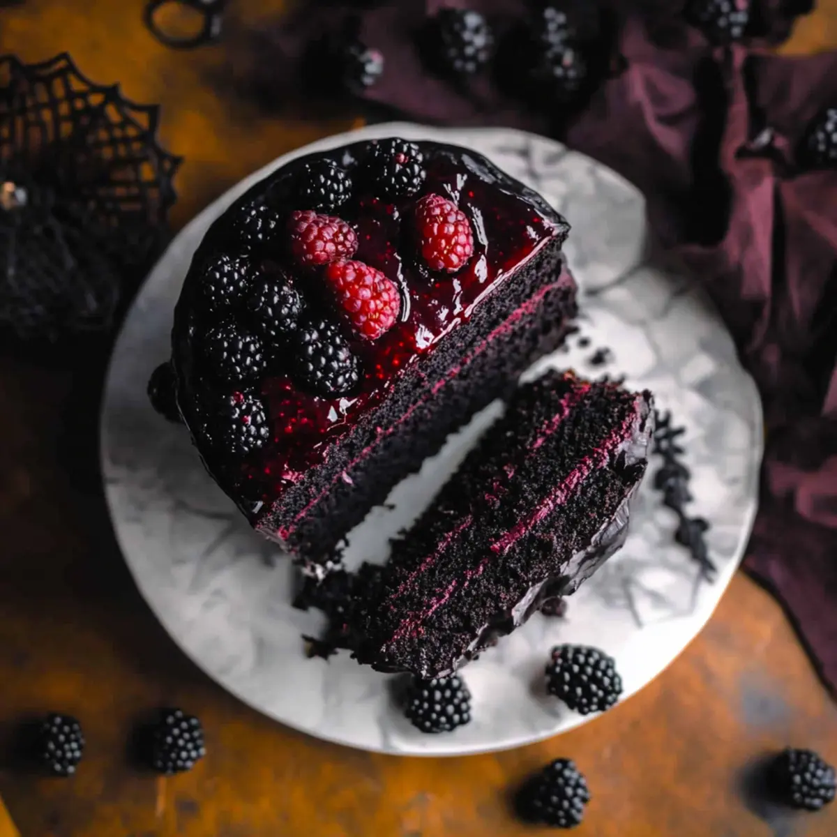 Indulge in Black Velvet Cake with Blackberry Delight Filling