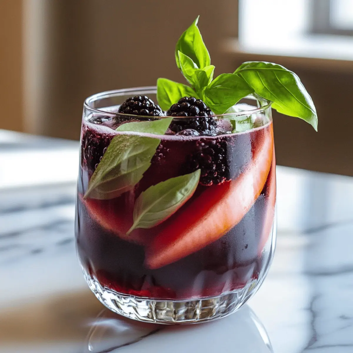 - Garnish with extra blackberries and a basil sprig, then serve immediately.