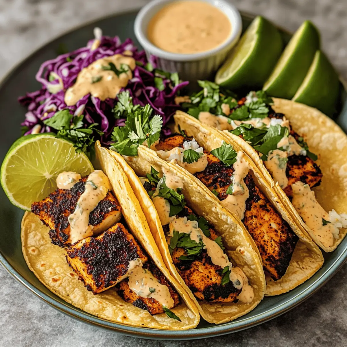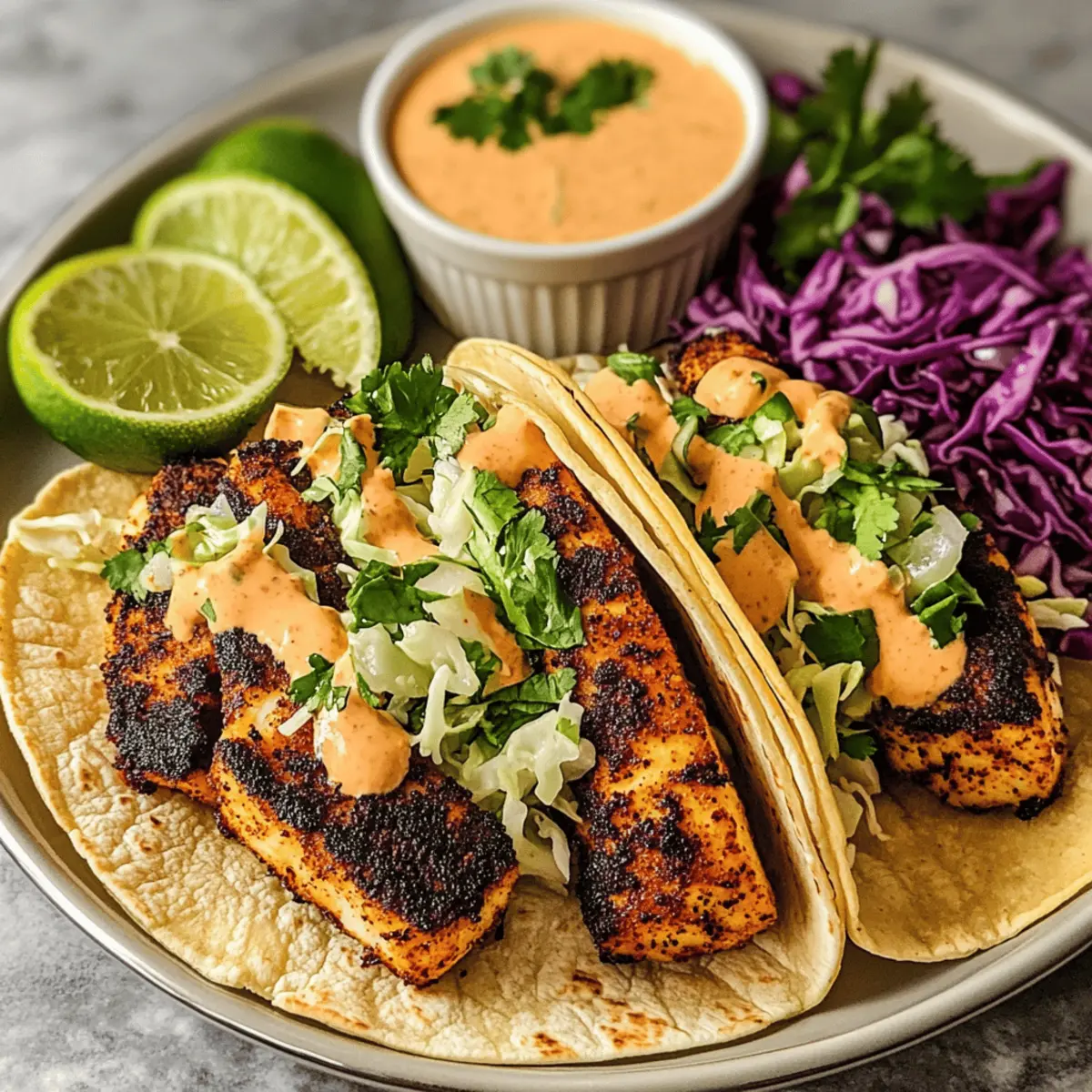 Warm your tortillas in a dry skillet or microwave until pliable. Begin assembling your Blackened Fish Tacos by placing a layer of shredded cabbage on each tortilla. Gently flake the cooked fish over the cabbage and add crumbled Cotija cheese. Finish by drizzling the zesty chipotle-lime sauce on top and sprinkling with additional cilantro if desired. Serve immediately with lime wedges for an extra burst of freshness.