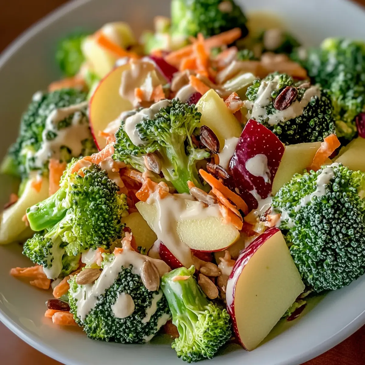 Freshness, This vivid broccoli apple crunch salad bursts with vibrant colors and flavors that can instantly elevate your dining experience.