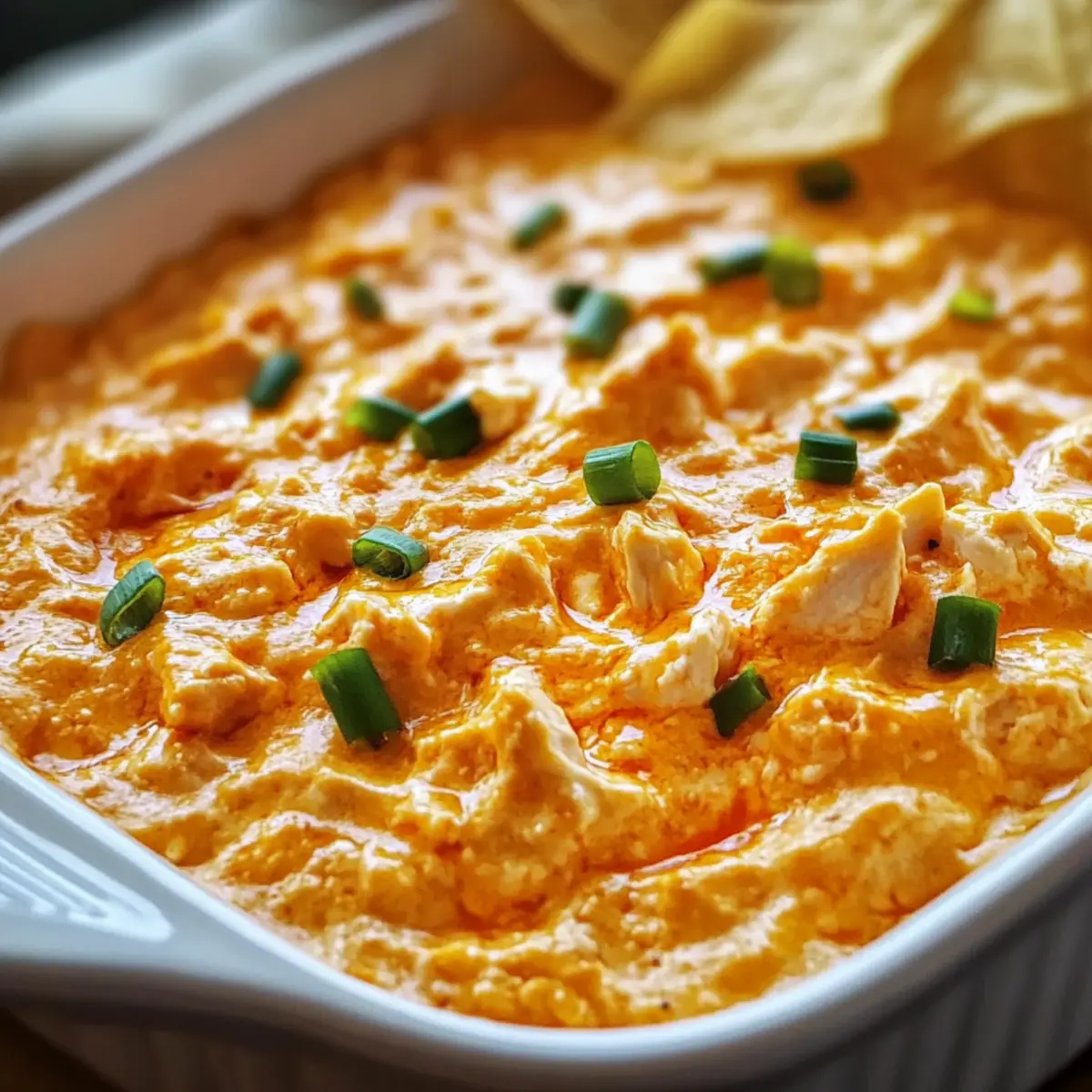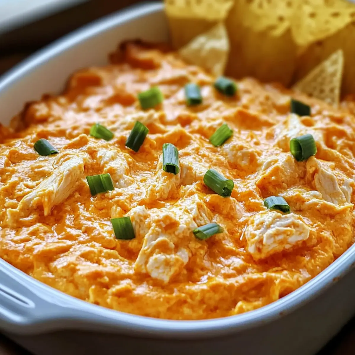 Once baked, remove the dish from the oven and let it cool for about 5 minutes. Garnish the dip with finely sliced green onions, adding a refreshing touch to the rich flavors. Serve warm with tortilla chips, celery sticks, or toasted baguette slices, and enjoy the rave reviews from your friends and family.