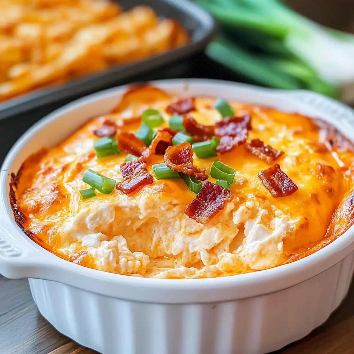 These Buffalo Crack Chicken Dip is perfect for busy home cooks looking to save time during hectic weekdays or game days! You can prepare the entire mixture up to 24 hours in advance by combining the shredded chicken, cream cheese, mozzarella, ranch seasoning, cheddar, mayo, sour cream, green onions, Buffalo sauce, and garlic in a bowl. Just cover it tightly and refrigerate until you’re ready to bake. To maintain its creamy texture, ensure all ingredients are at room temperature before mixing. When it's time to serve, simply transfer the dip to your baking dish, sprinkle on the crispy bacon, and bake for 25-30 minutes until hot and bubbly, giving you delicious, satisfying results with minimal effort!
