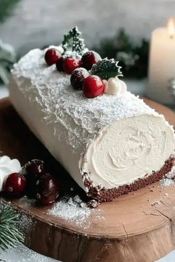 Delicious Vegan Yule Log with Heavenly White Chocolate Frosting