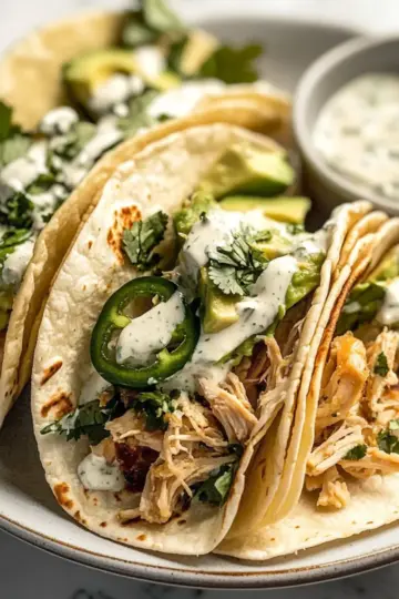 Savory Shredded Chicken Tacos with Creamy Chimichurri Sauce