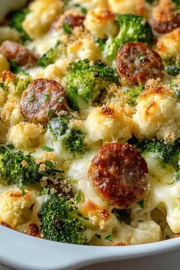 Cheesy Broccoli, Sausage and Cauliflower Casserole Bliss