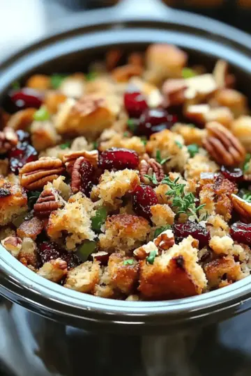 Savory Slow Cooker Cranberry Pecan Stuffing for Holiday Cheer