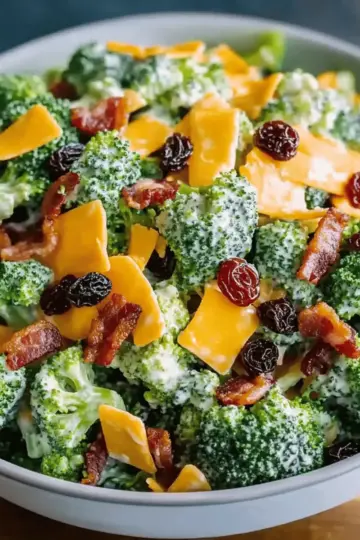 Classic Broccoli Bacon Salad with Sweet Raisins and Cheddar