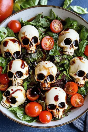 Delightful Halloween Salad with Mozzarella Skulls to Wow Guests