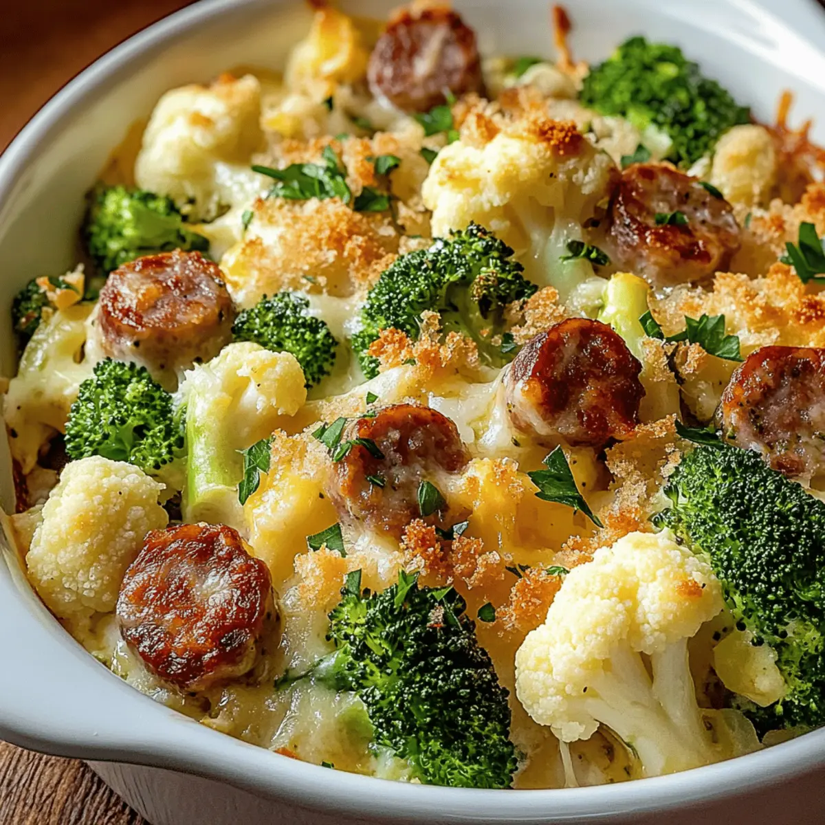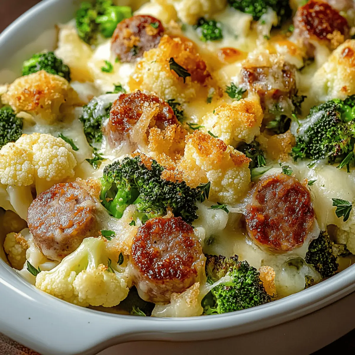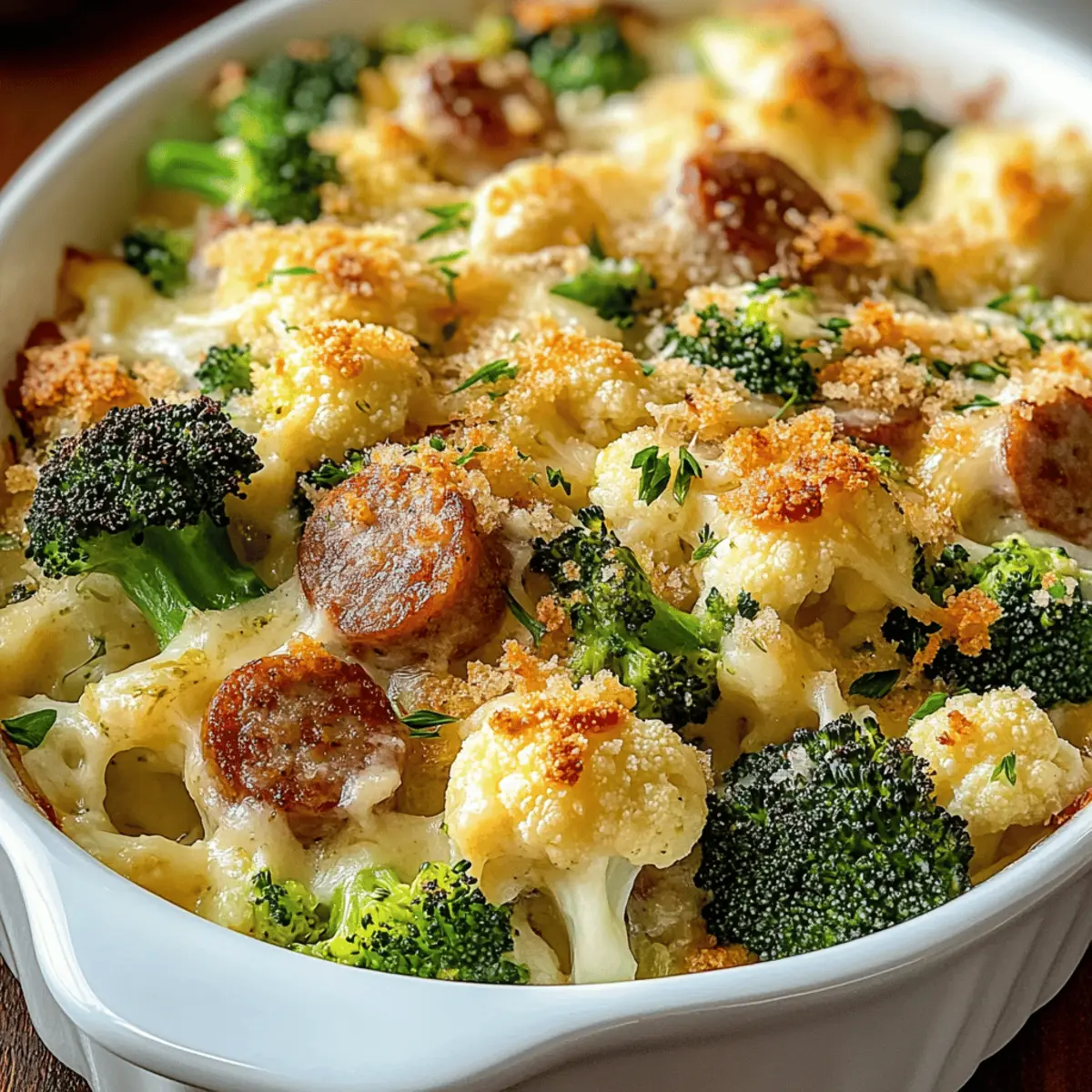 Cheesy Broccoli, Sausage and Cauliflower Casserole Bliss