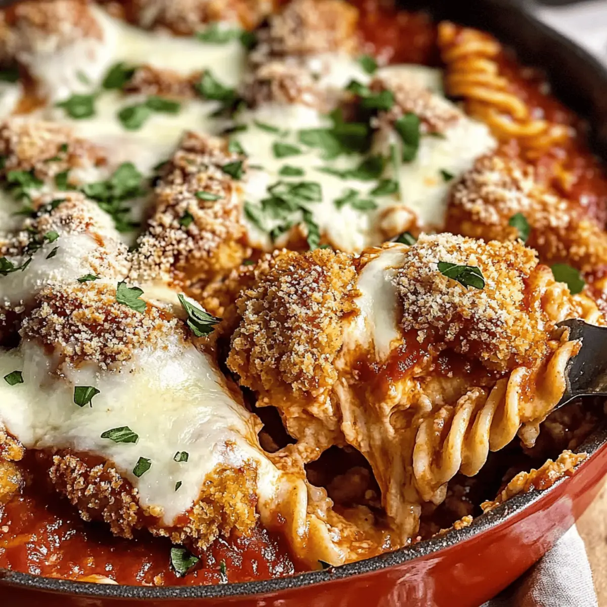 As I hurriedly shuffled through my kitchen, a whiff of sizzling breadcrumbs and tangy marinara caught my attention, reminding me of the family dinners that filled my childhood with warmth. Today, I’m thrilled to share my take on a classic favorite with this Easy Chicken Parmesan Casserole. With crispy breaded chicken, gooey mozzarella, and a delightful finish of rich marinara sauce, this dish brings all the familiar flavors we adore together in a cozy casserole. What makes it even better? It’s ready in just 30 minutes—perfect for those busy weeknights—and is undeniably family-friendly. Packed with protein and melty goodness, this casserole is sure to become a new staple at your table. Are you ready to bring the comforting taste of Italian-American culinary tradition into your home? Let's dive in!
