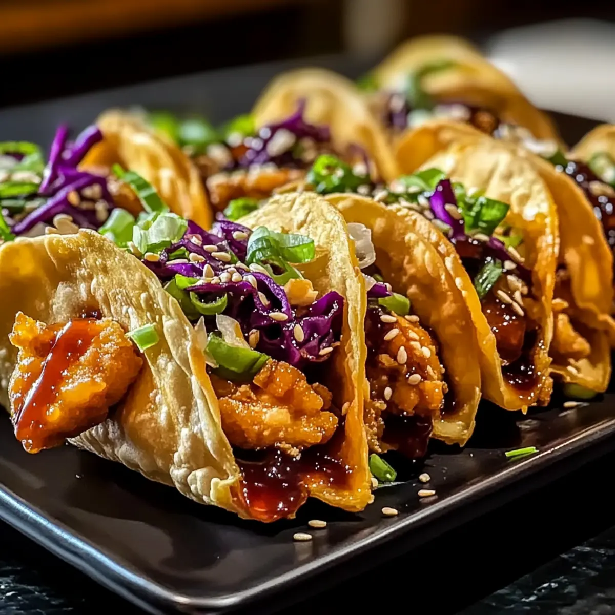 Picture a vibrant spread of flavors and textures that enhances the fun of your crispy chicken wonton tacos!
