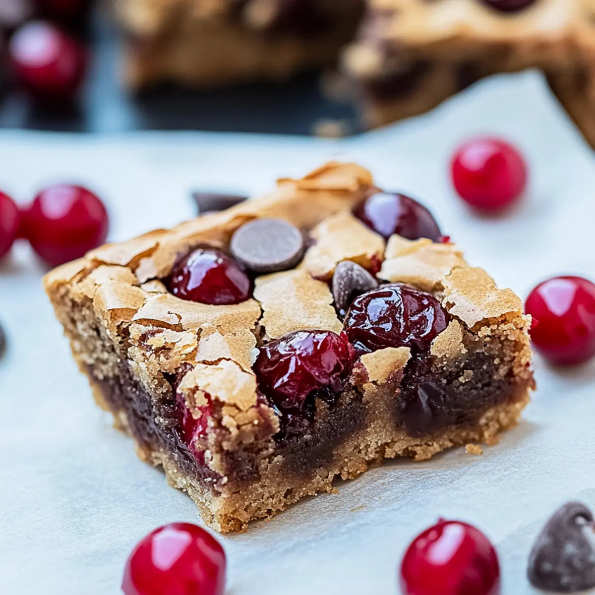 Irresistible combination: These blondies uniquely blend the sweetness of cherries with rich chocolate, creating a flavor explosion you won't forget.