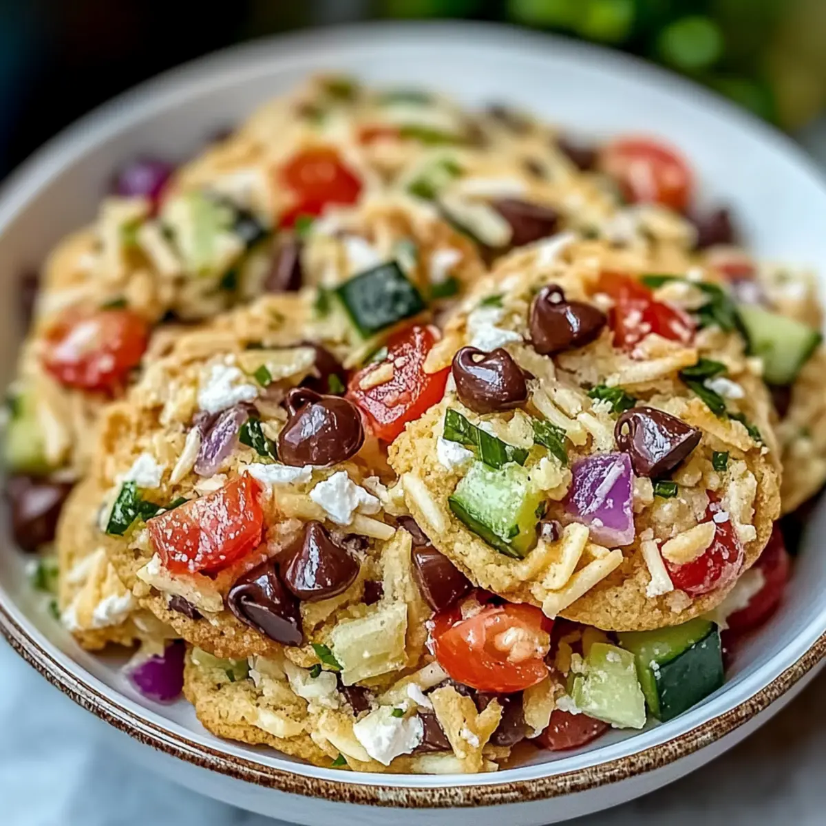 - Combine Ingredients: In a bowl, mix orzo, garlic, tomatoes, cucumber, and onion. Add feta and parsley, then toss.