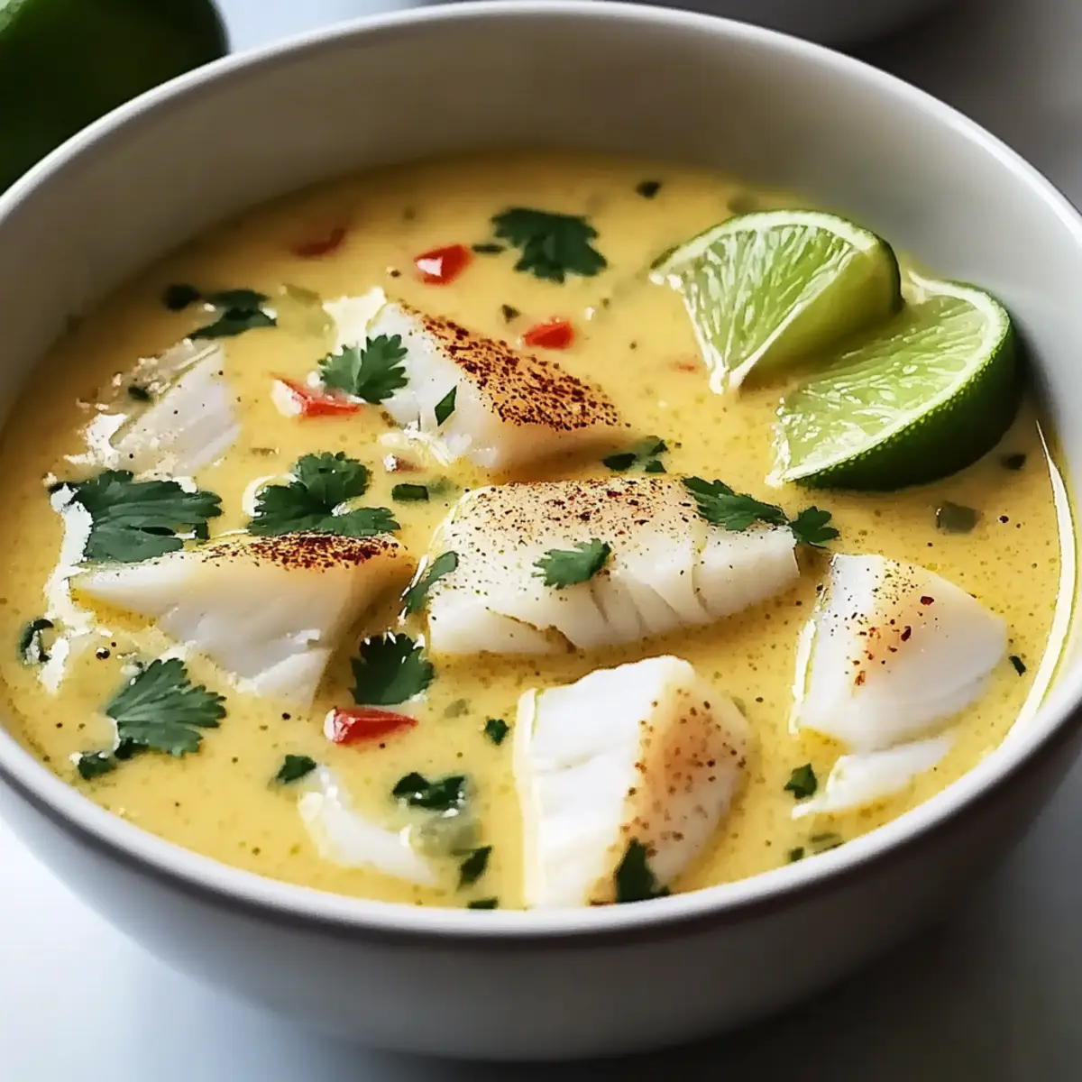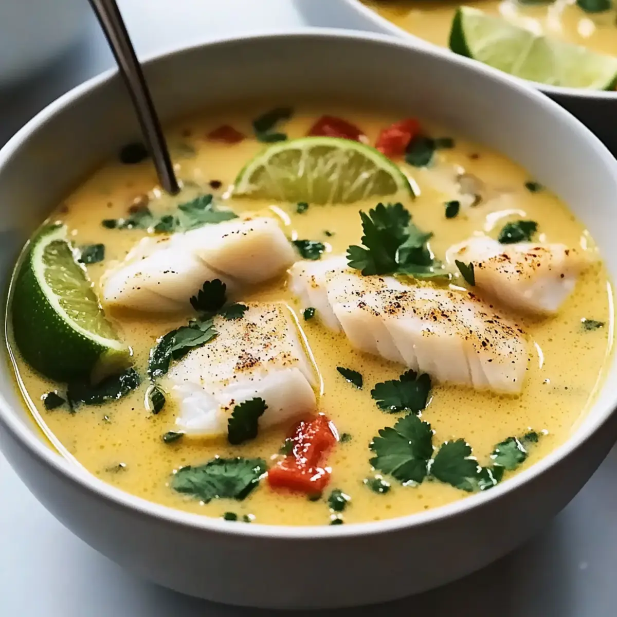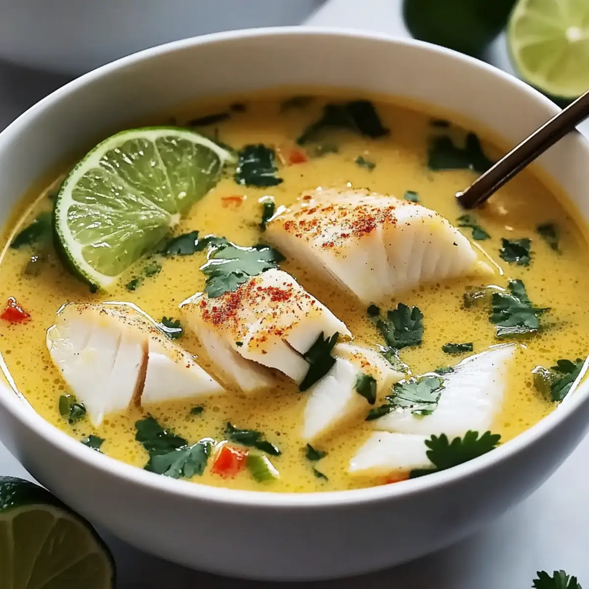 Remove the pot from heat and fold in a handful of chopped fresh cilantro for a burst of flavor. Ladle the soup into bowls, garnishing each with lime wedges for an extra citrus kick. Your Coconut Lime Fish Soup is now ready to transport you and your loved ones to a tropical paradise with every delicious spoonful!