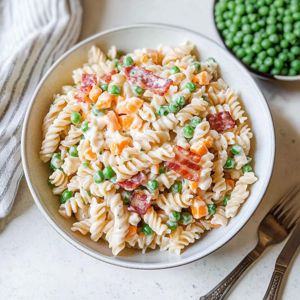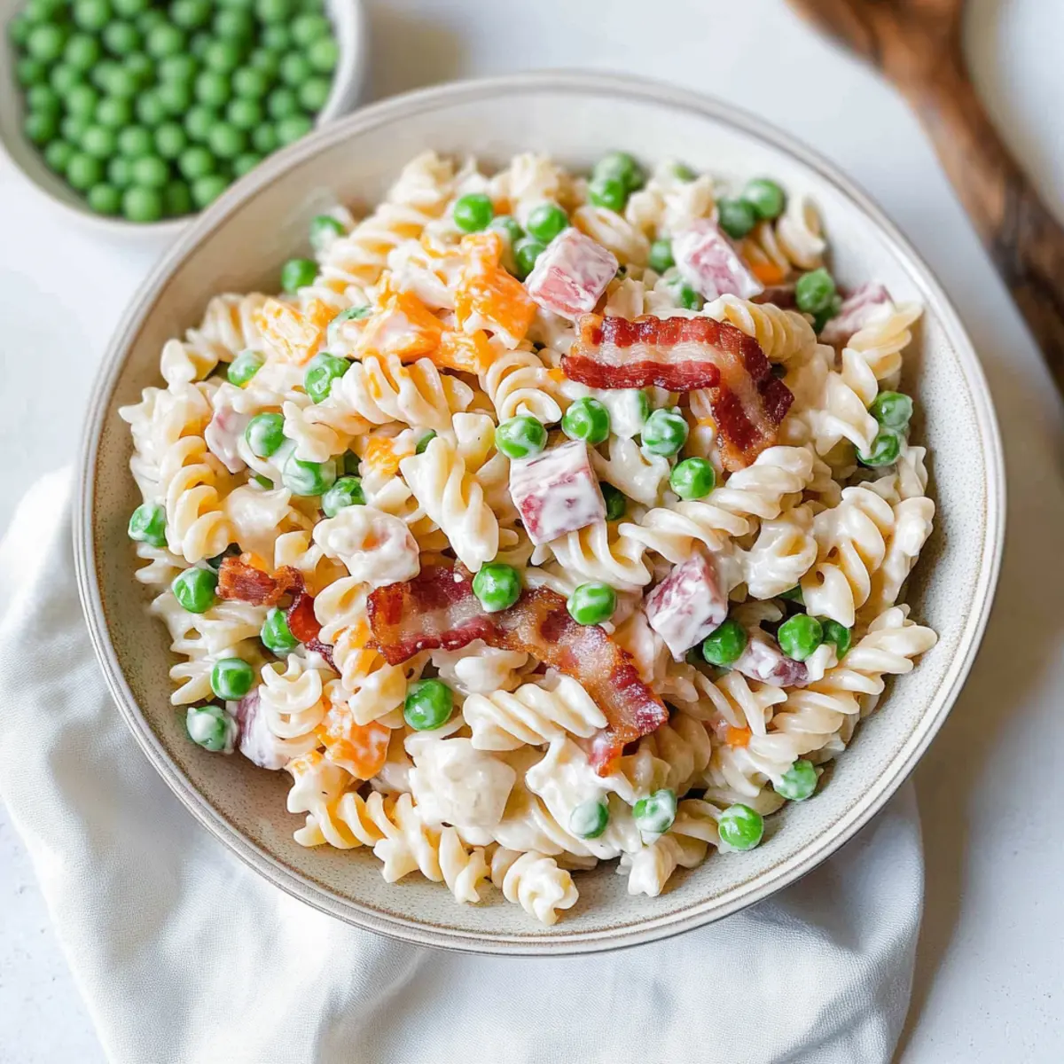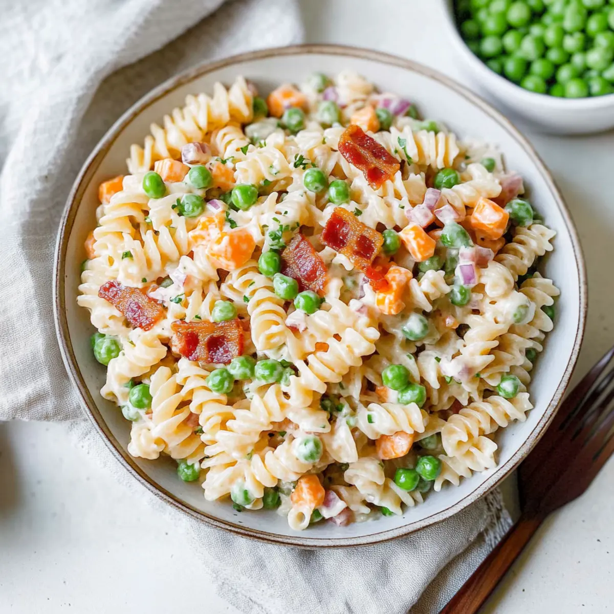 Crowd-Pleaser: It’s hard to resist the combination of crispy bacon, creamy dressing, and sweet peas, making it a hit at any gathering.