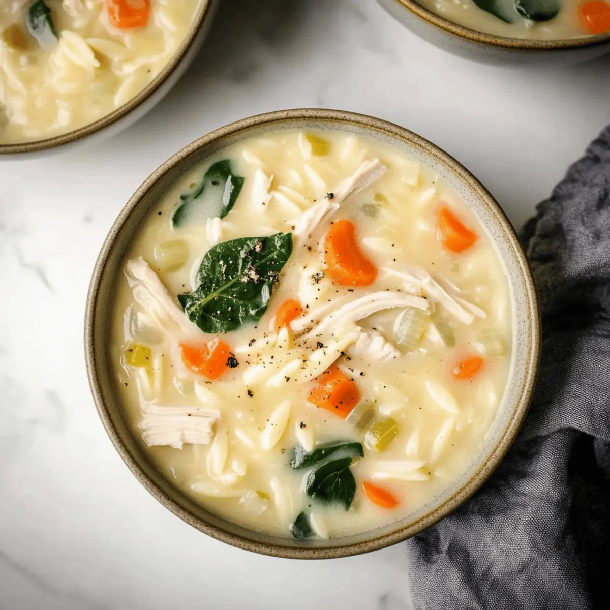 As the months grow colder, I find myself reaching for a bowl that promises warmth and comfort—the kind that wraps around you like a cozy blanket. That's why I’m excited to share my Creamy Turkey Orzo Soup with you! In just 30 minutes, this one-pot wonder transforms leftover turkey into a rich, hearty meal that rivals the best noodle soups. It’s a clever way to turn last night’s dinner into today’s cozy lunch or dinner, and the customizable recipe means you can tailor it to what you have on hand. Whether you're cooking for a crowd or just a simple weeknight supper, this easy recipe is bound to become a staple in your kitchen. Curious about how you can make it your own? Let’s dive in!