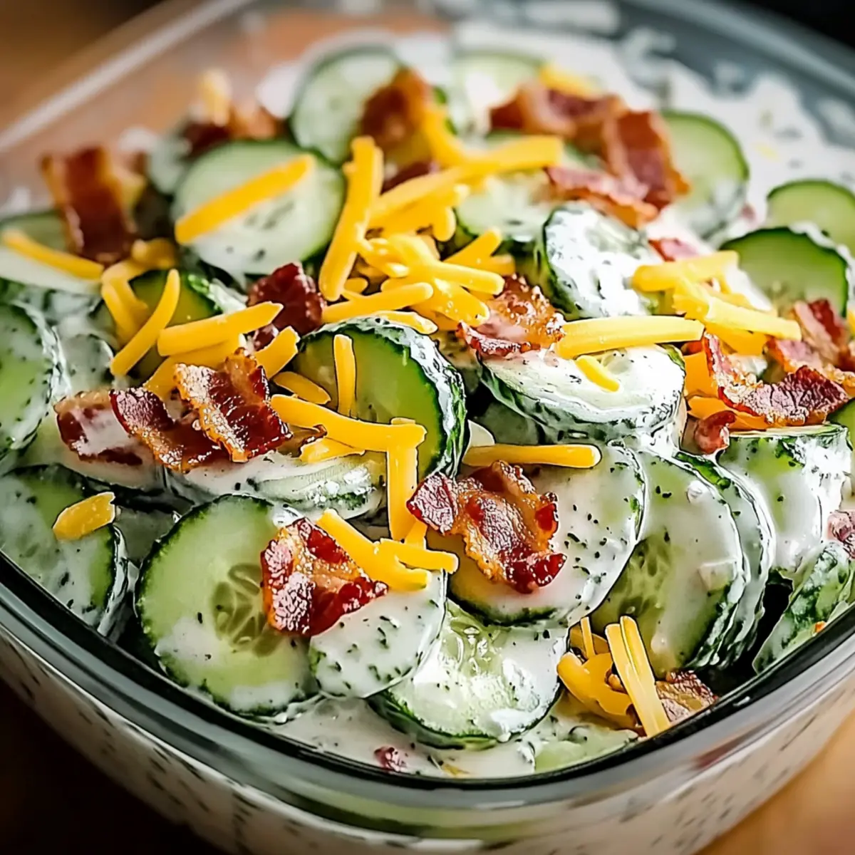 Fresh, Crispy Ingredients: The crunchy cucumbers paired with crispy bacon elevate this salad, making each bite a delightful experience.