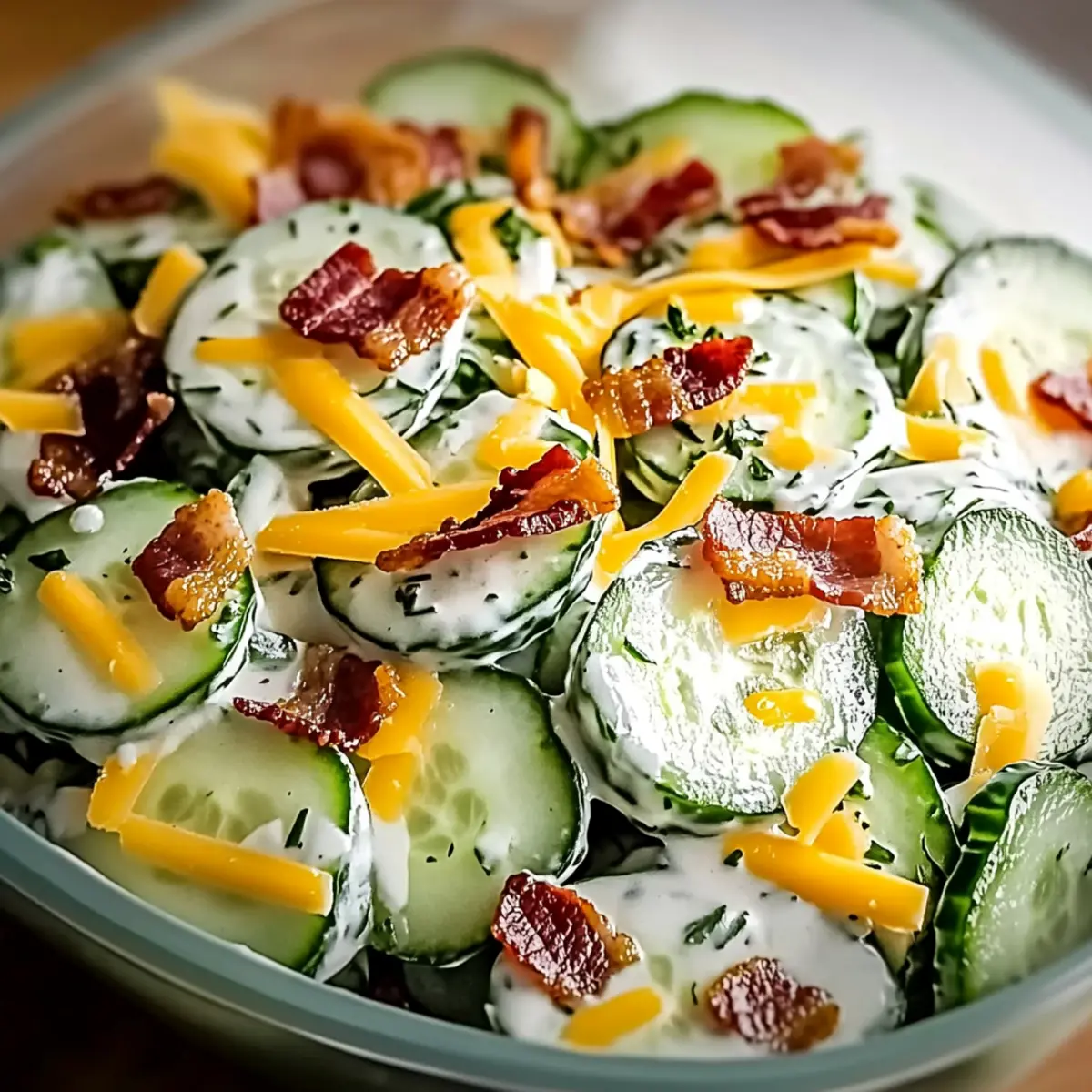 Creamy Cucumber Salad with Bacon and Cheese Bliss