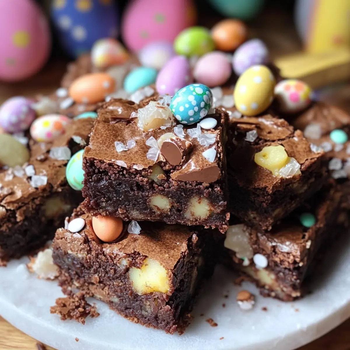 Festive Flair: Bursting with colorful Easter-themed chocolates, these brownies not only taste amazing but also add a vibrant touch to your dessert table.
