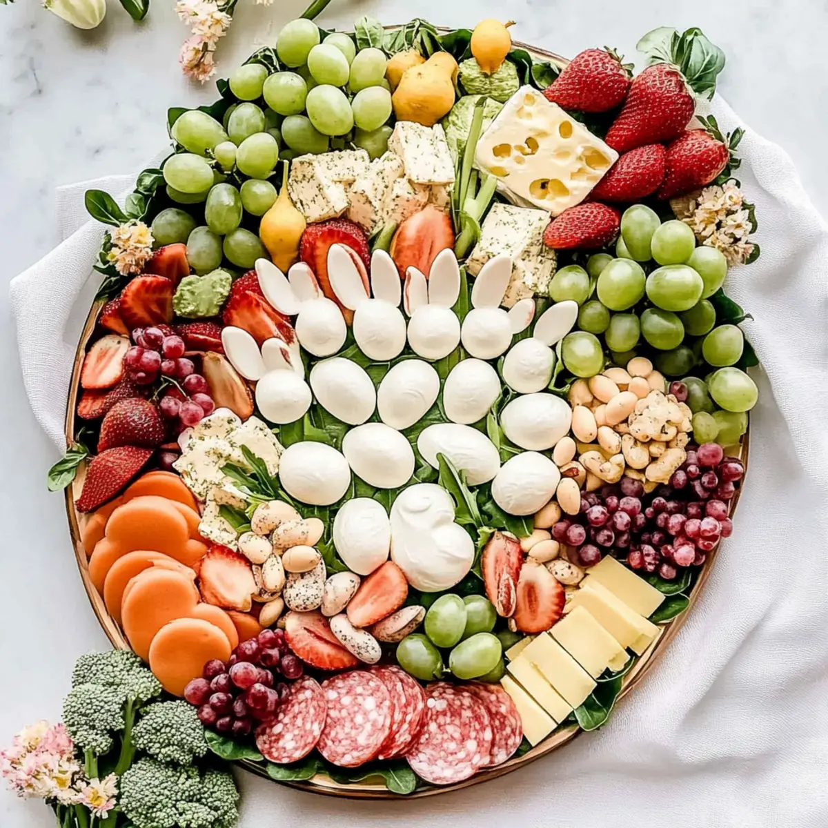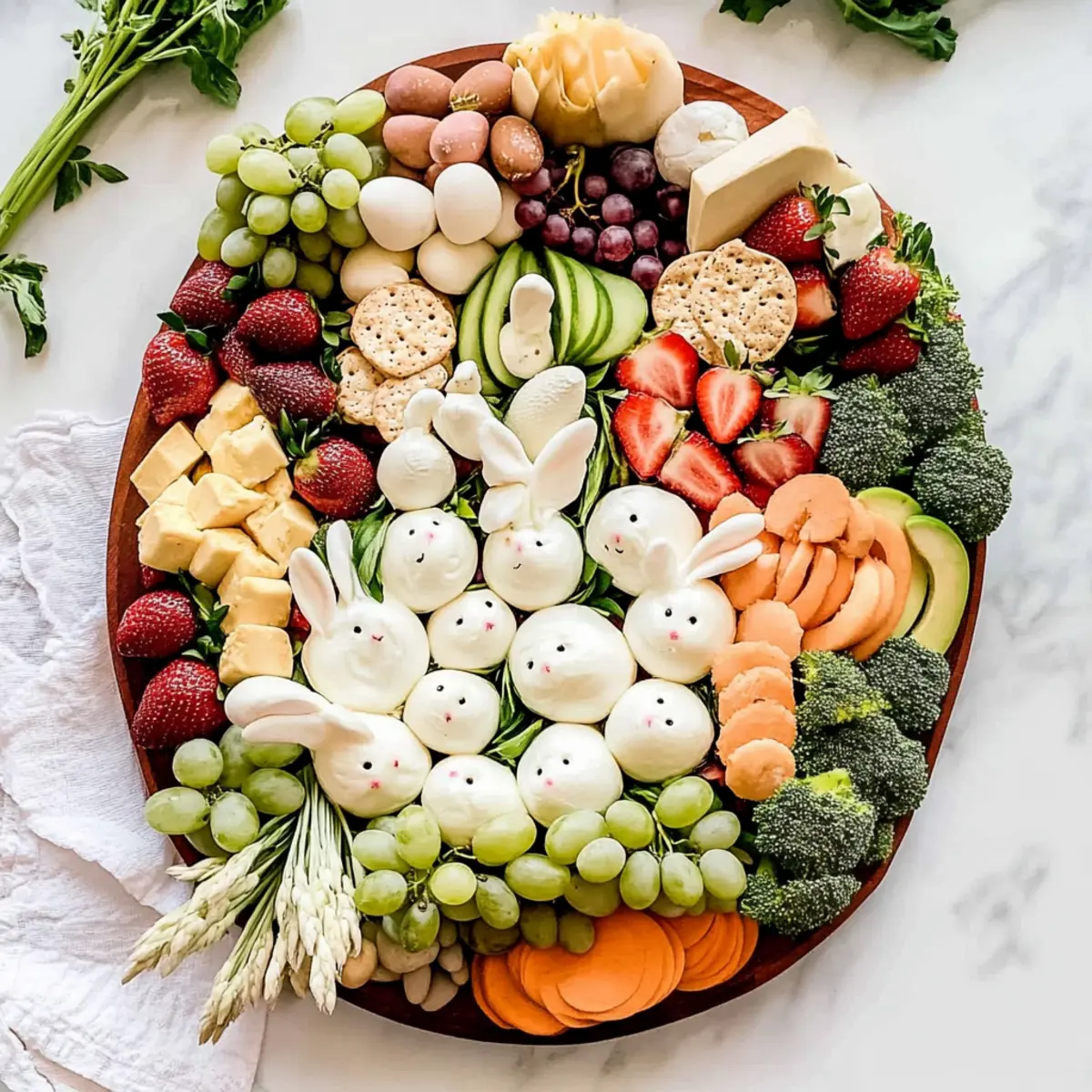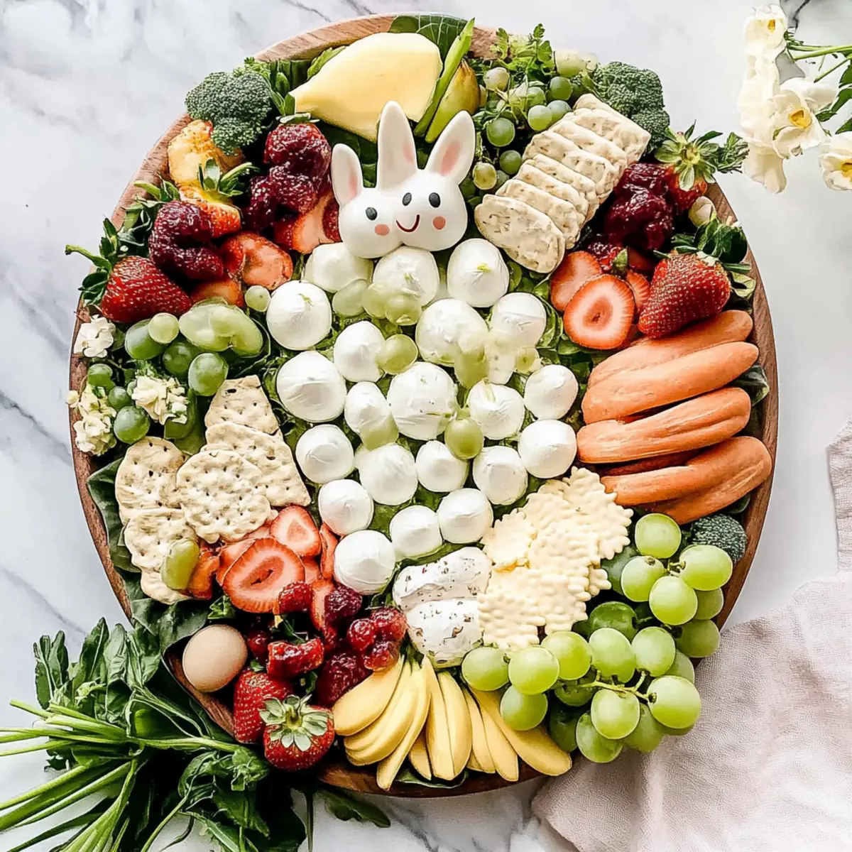 • Mix and Match: Don't hesitate to swap ingredients based on availability. This versatile Easter Bunny Charcuterie Board can be uniquely yours with different fruits and cheeses!