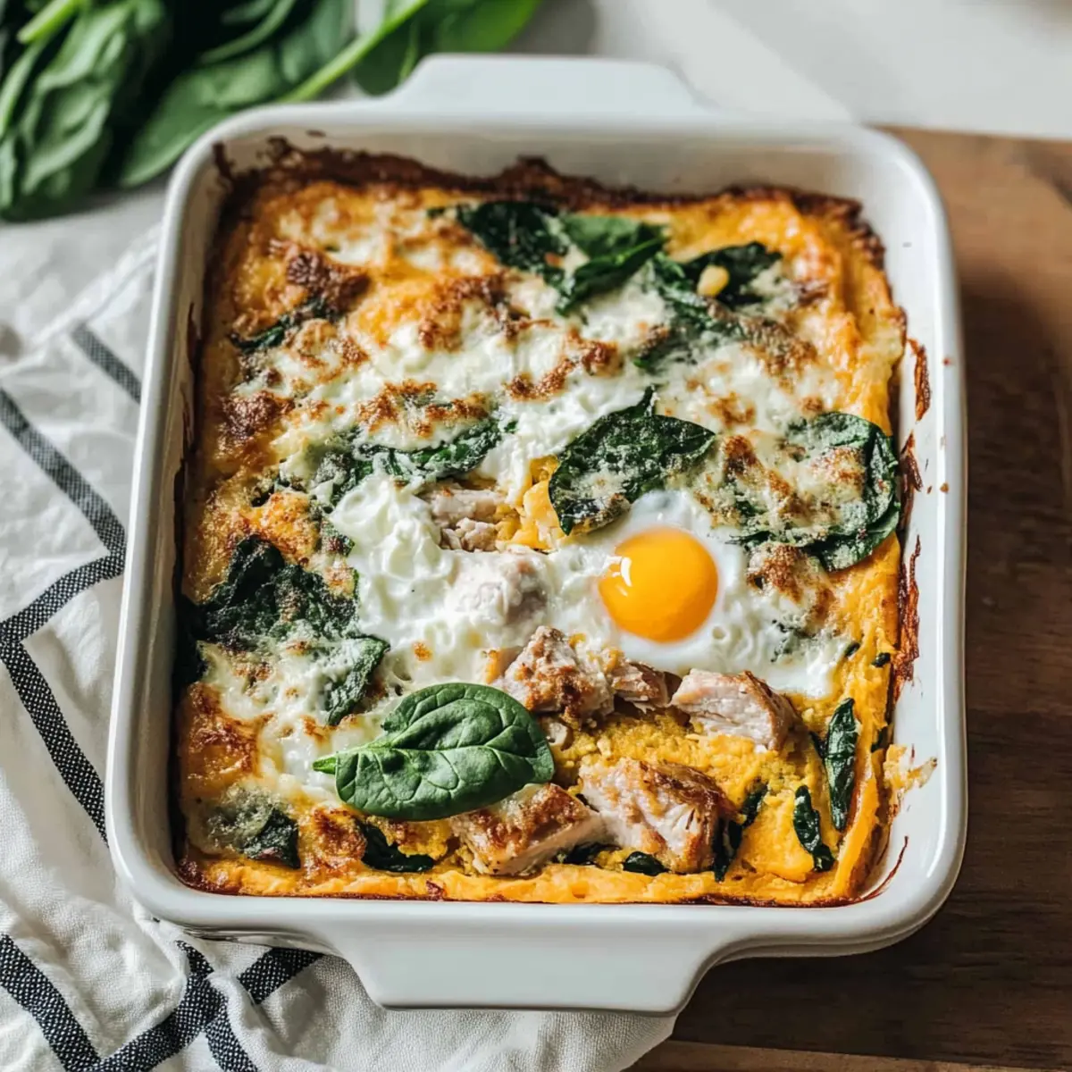 Remove the casserole from the oven and add a generous layer of baby spinach on top. This will not only add vibrancy but also nutrients. Return the dish to the oven for an additional 10 to 15 minutes, or until the center is firm and the spinach is wilted, giving your Egg Breakfast Casserole a fresh touch.