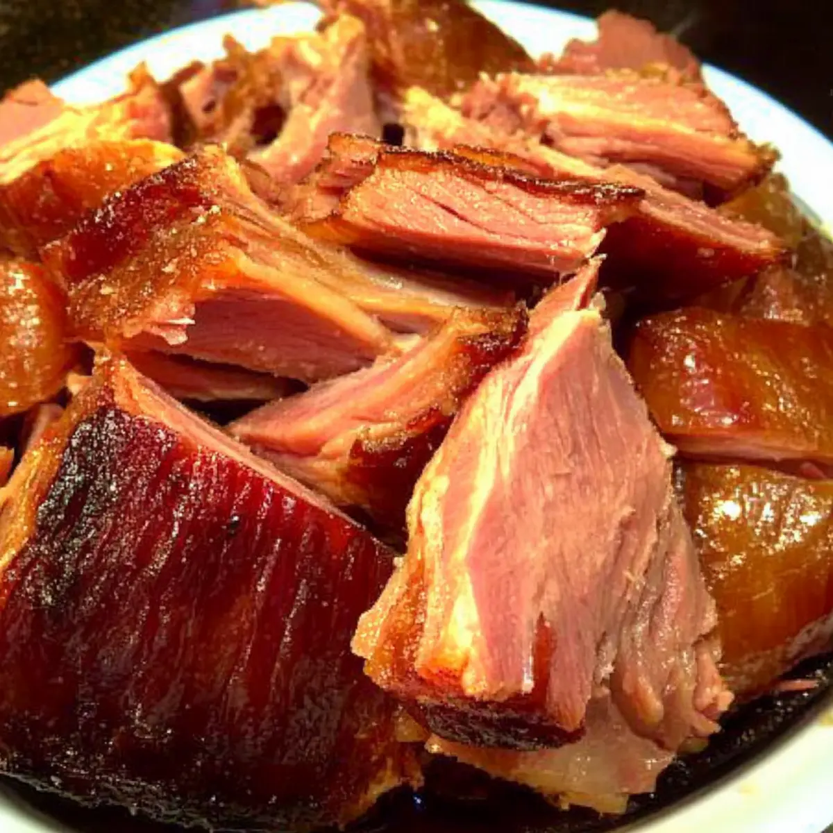 Once the ham is beautifully tender, carefully remove it from the crock pot using tongs. Allow it to rest for a few minutes before slicing or serving in chunks as desired. Be sure to reserve the delicious cooking juices for flavoring any sides or making broth, enhancing your meal with even more depth.