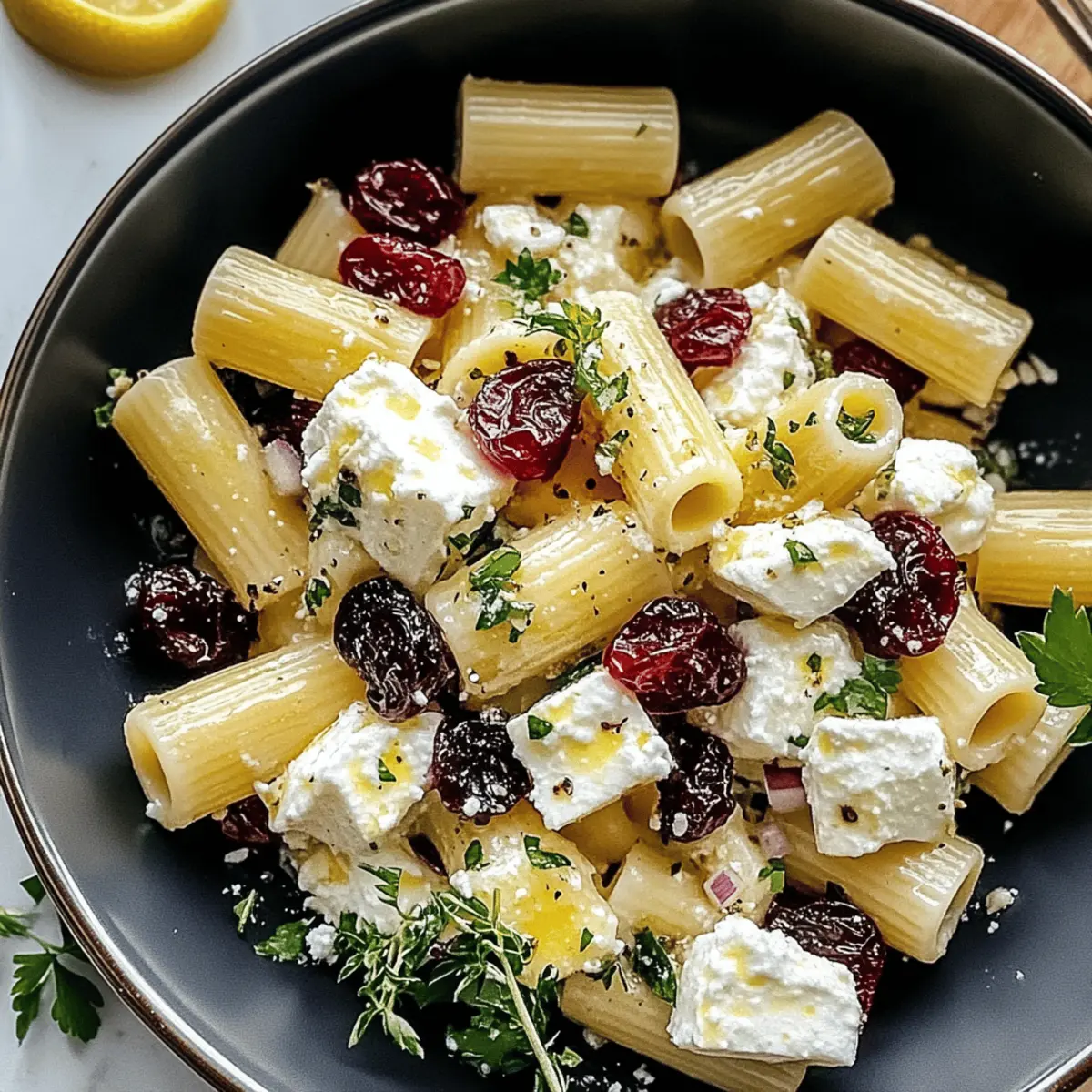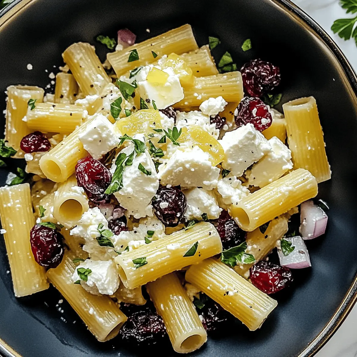 On a bright summer afternoon, when the sun invites you outdoors, who wouldn't crave something vibrant and refreshing? This Feta & Cranberry Rigatoni Salad with Zesty Lemon Vinaigrette is my go-to choice for that perfect blend of tangy and sweet. With its creamy feta mingling with chewy cranberries, this salad transforms simple ingredients into an unforgettable dish. Not only is it a breeze to prepare, taking just minutes to toss together, but it also makes a stunning centerpiece for any gathering. Whether served as a light lunch or a show-stopping side at your next barbecue, this salad is bound to impress. Curious to dive into the details of this deliciousness? Let’s get started!