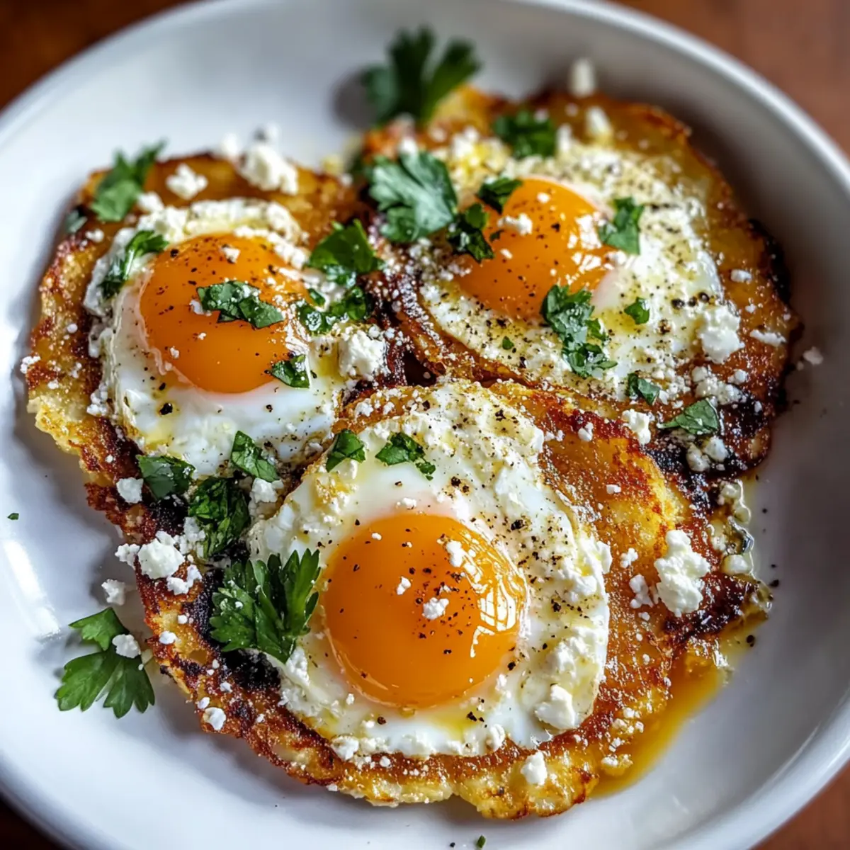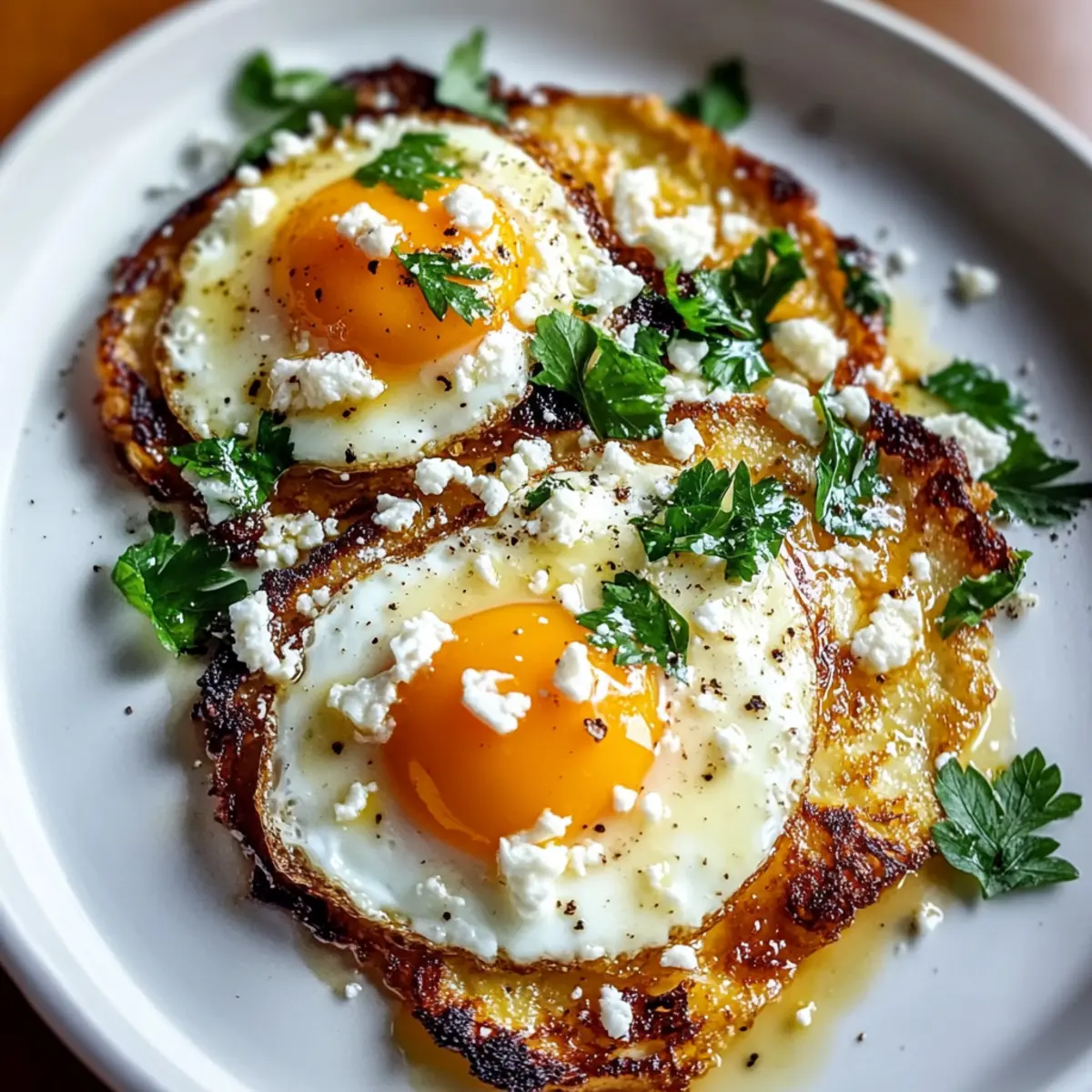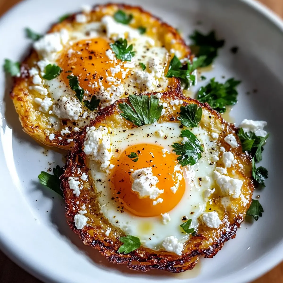 As the eggs finish cooking, consider adding a sprinkle of fresh parsley or a pinch of red pepper flakes for an extra burst of flavor and color. These optional ingredients will elevate your dish, bringing a refreshing brightness and a hint of warmth to your crispy feta fried eggs.