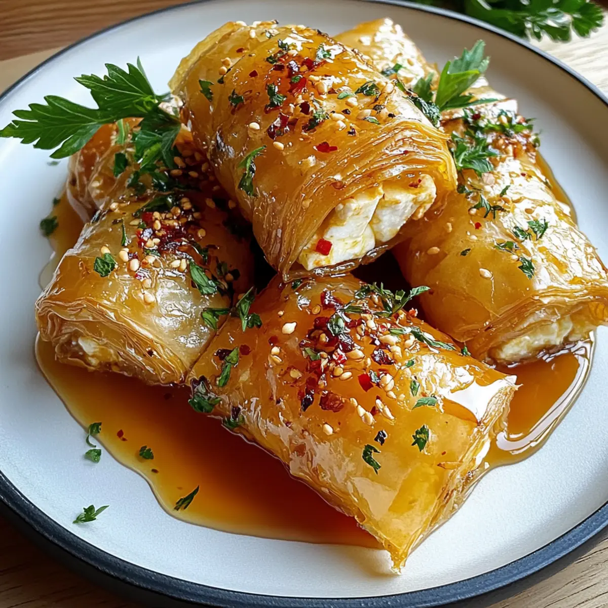 Serve Warm: For the best flavor and texture, serve the feta rolls warm right out of the oven, drizzled with chili honey for that extra pop of sweetness and heat.