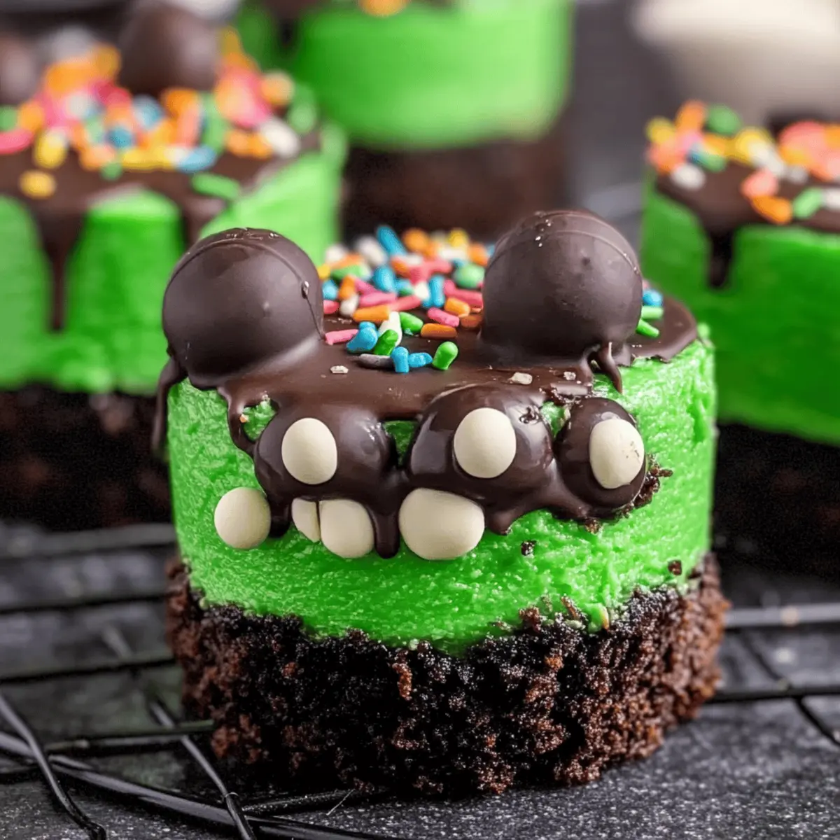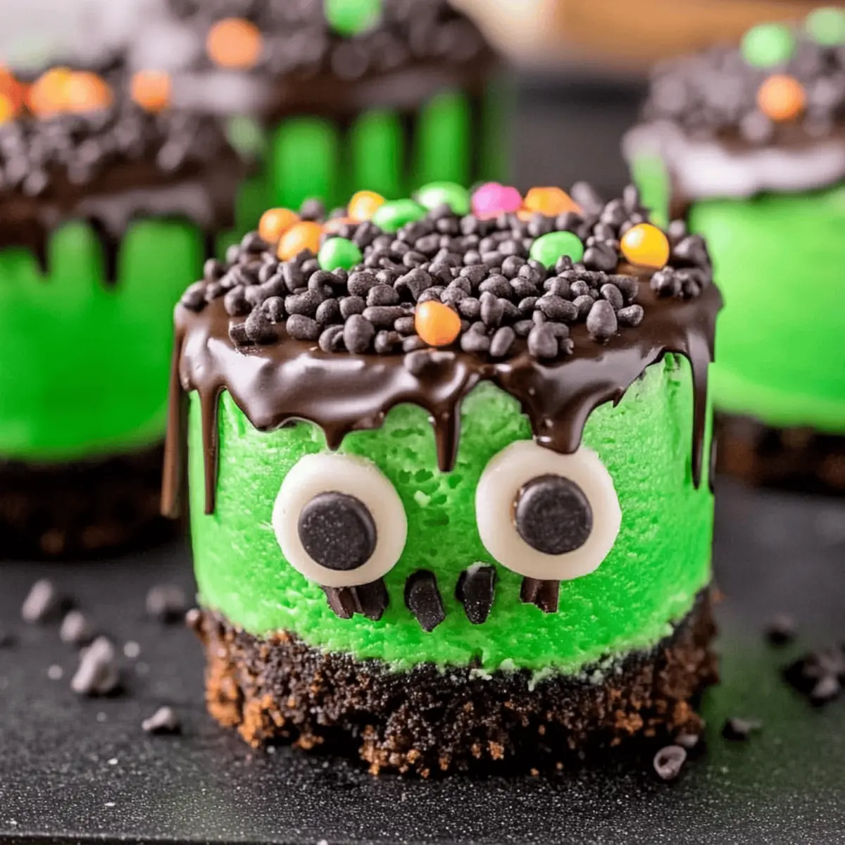 Deliciously playful: These Frankenstein Mini Cheesecakes blend classic cheesecake creaminess with a fun Halloween twist that everyone will adore.
