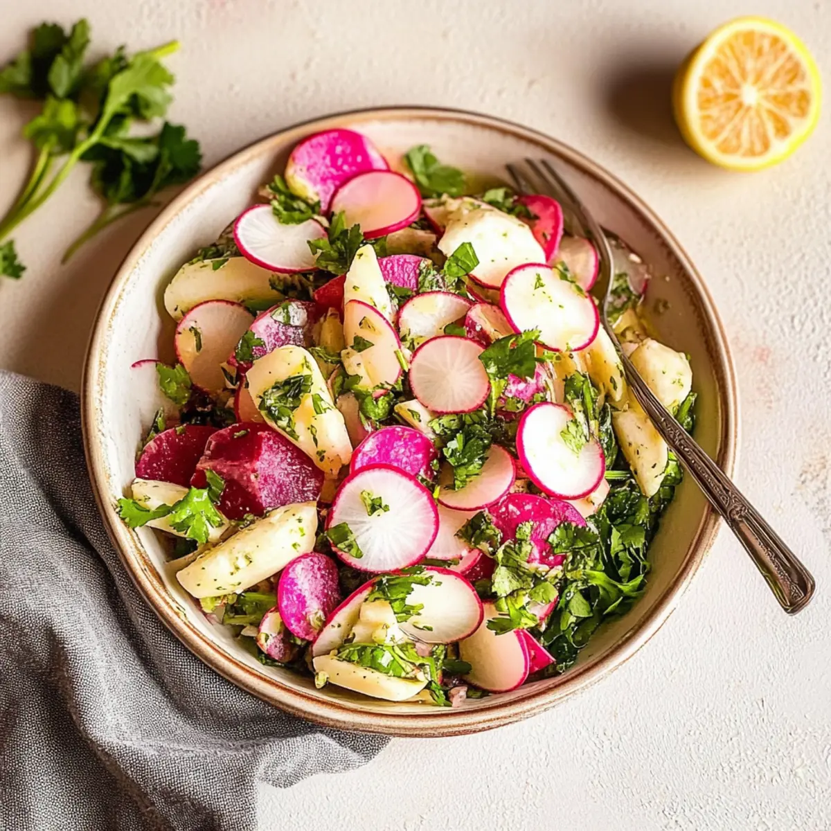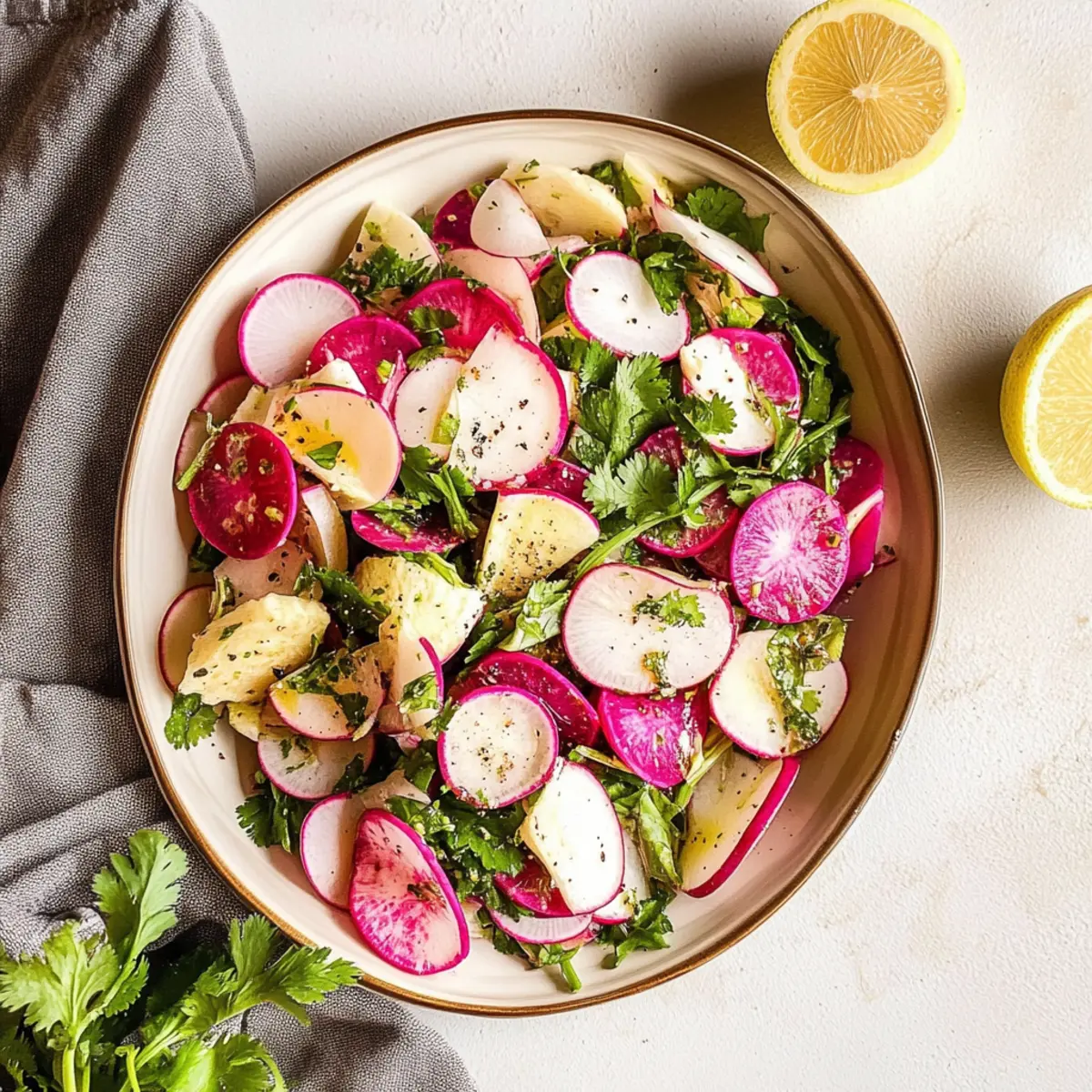 • Slice Thinly for Crunch: Thinly sliced radishes provide a better crunch and allow the dressing to cling to each piece, enhancing your Fresh Radish and Herb Salad.