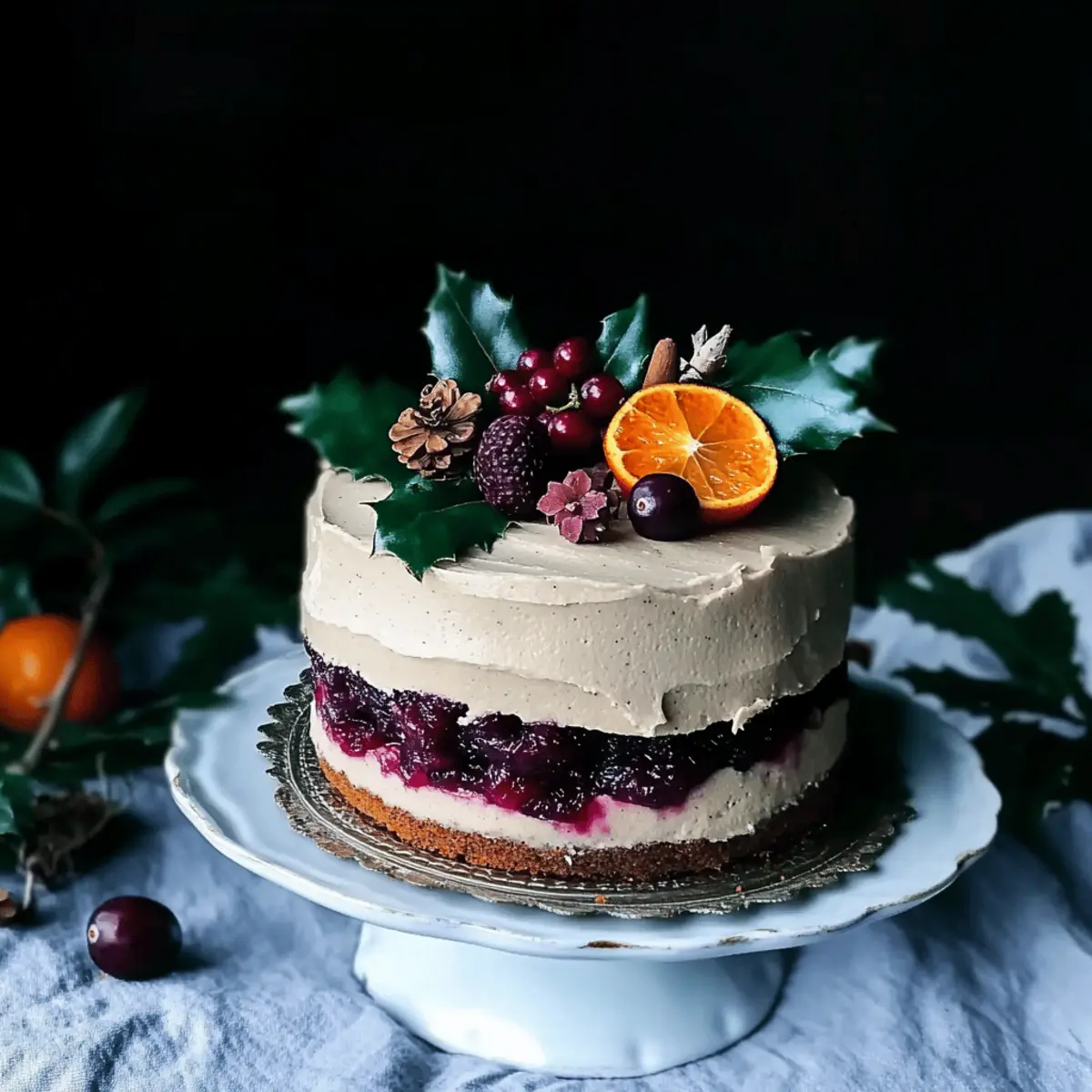 To assemble, place one layer of gingerbread cake on a serving platter. Spread a generous layer of cranberry chia jam on top, followed by the second gingerbread layer. Finally, frost the sides and top with your smooth cashew frosting, creating an inviting and festive presentation.