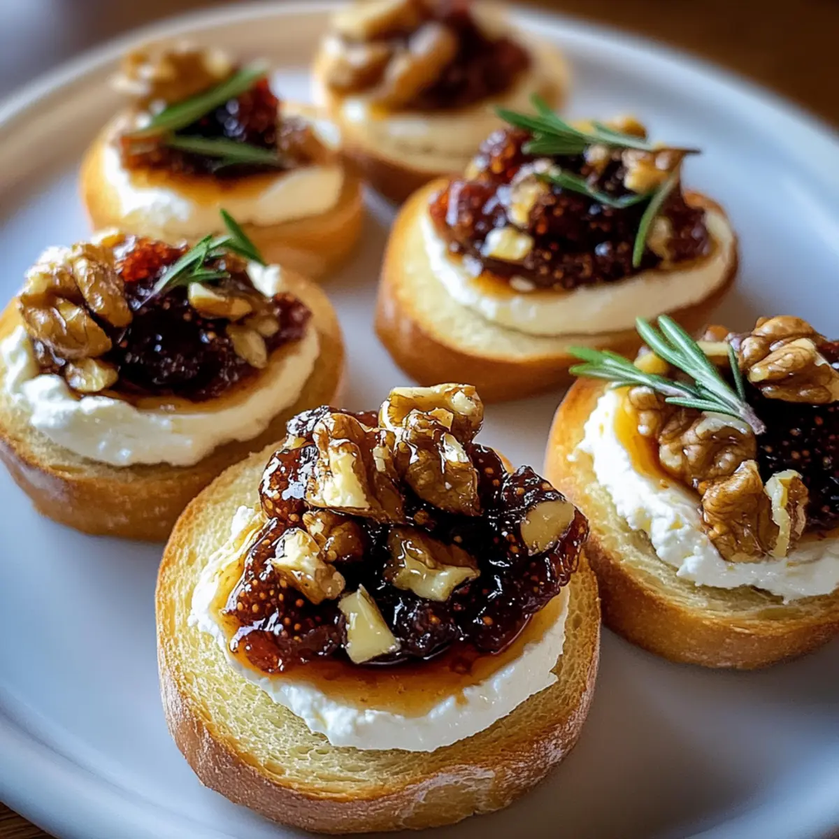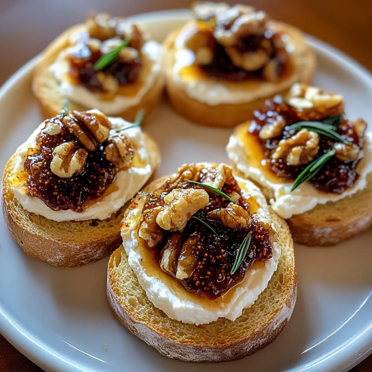 - Sprinkle chopped walnuts or pecans over the fig jam on each crostini.