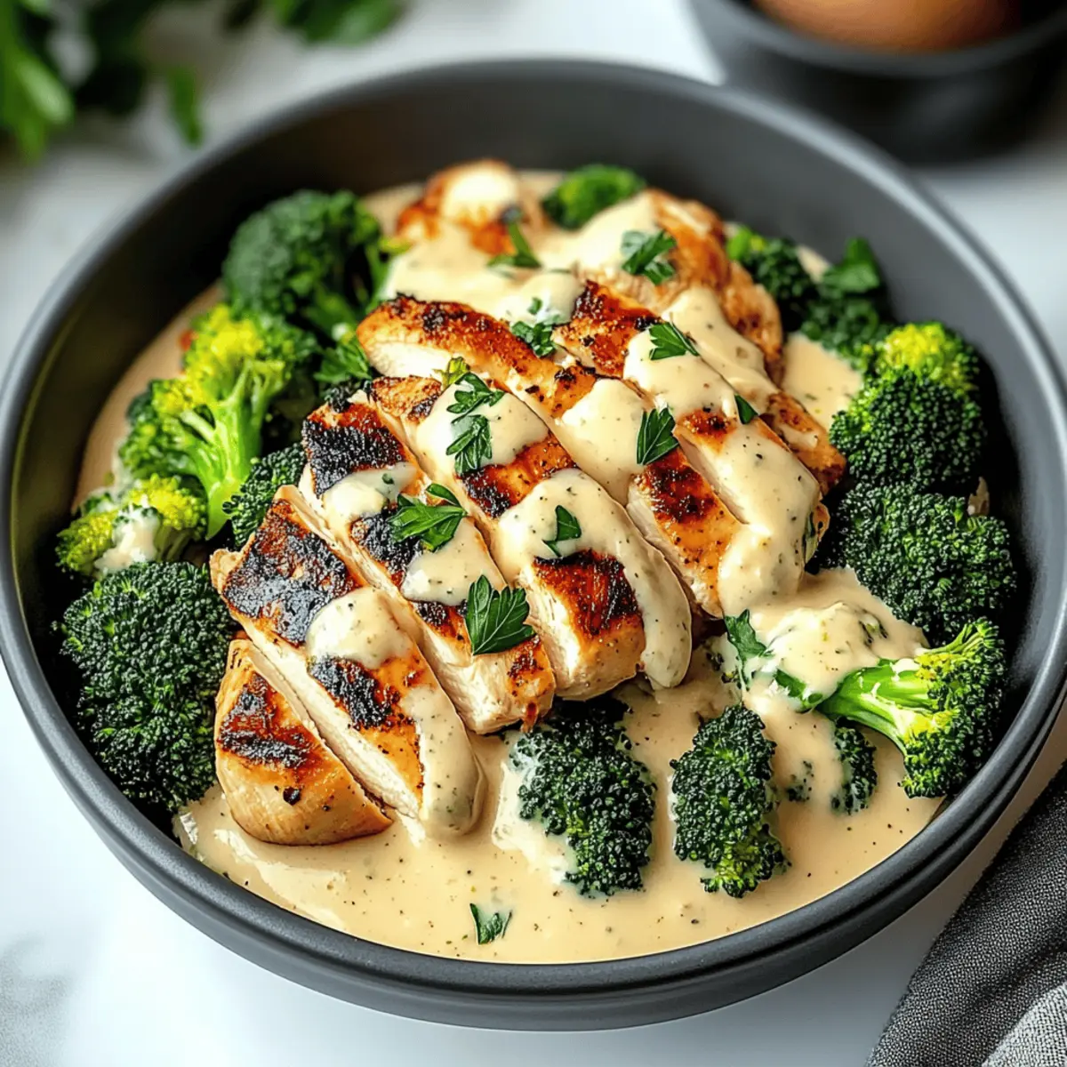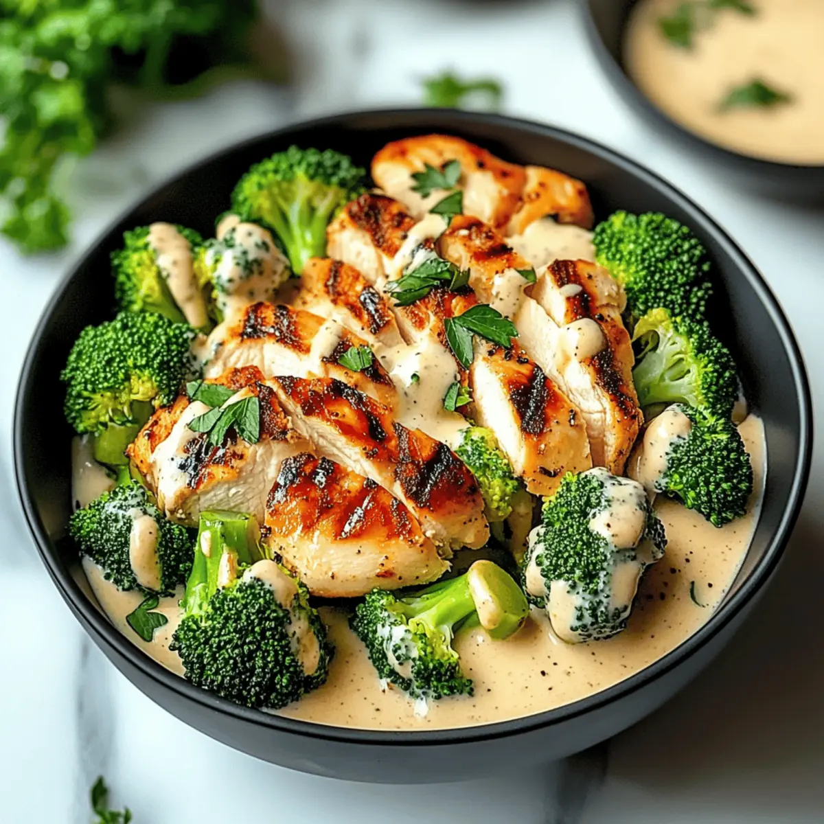 - Assemble bowls with broccoli, sliced chicken, and drizzle with creamy sauce.