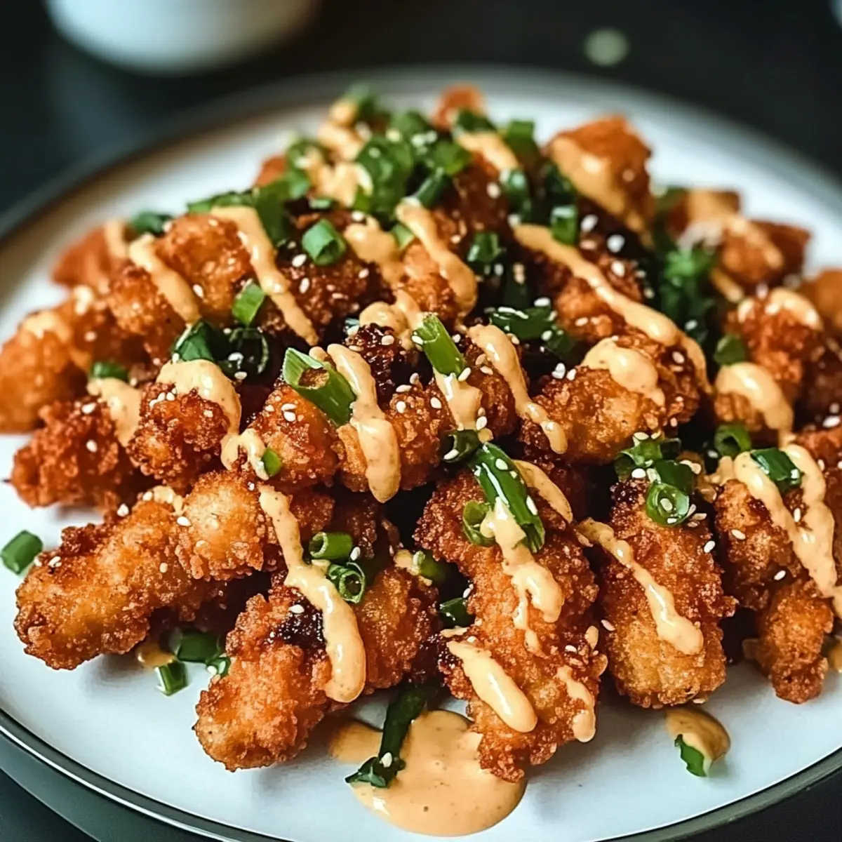 - Serve: Arrange the fried chicken on a platter and add spicy mayo and furikake as desired.