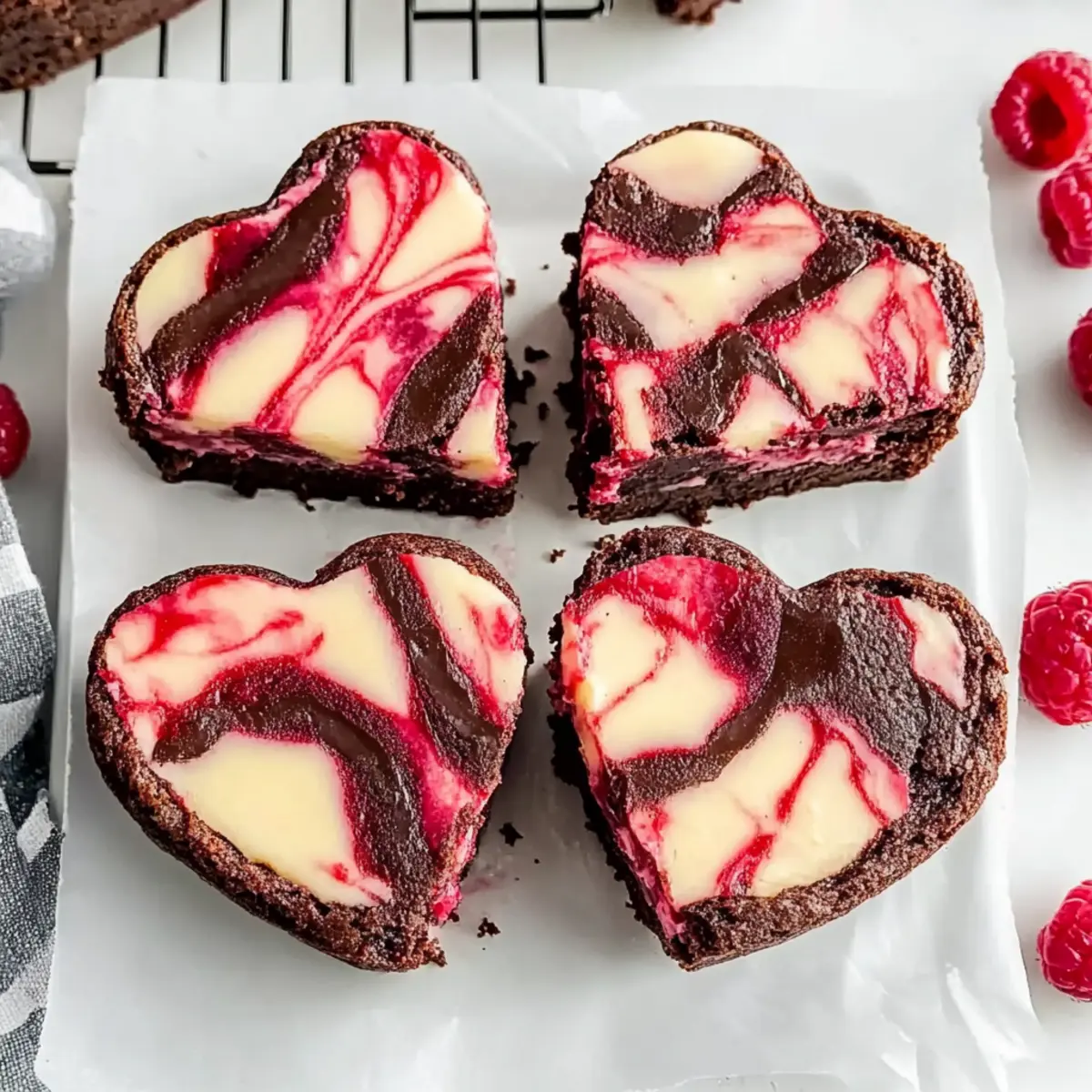 Decadent Heart Shaped Brownies with Raspberry Swirl Delight