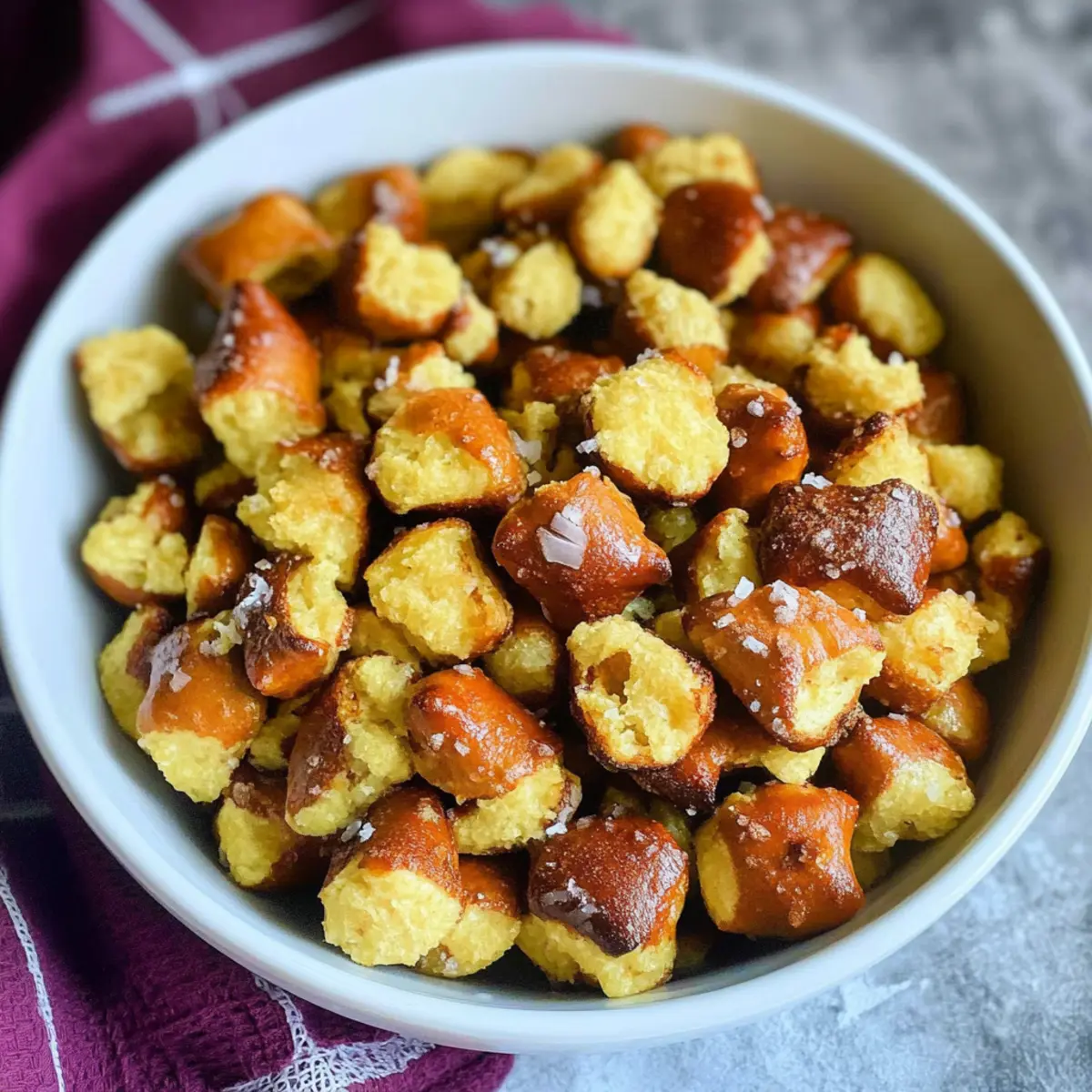 No worries! If your pretzel bites turn out less crunchy, try baking them a little longer—the additional time will help enhance their crunch. Be sure to stir them halfway through to even out the browning and prevent any pretzel pieces from burning.