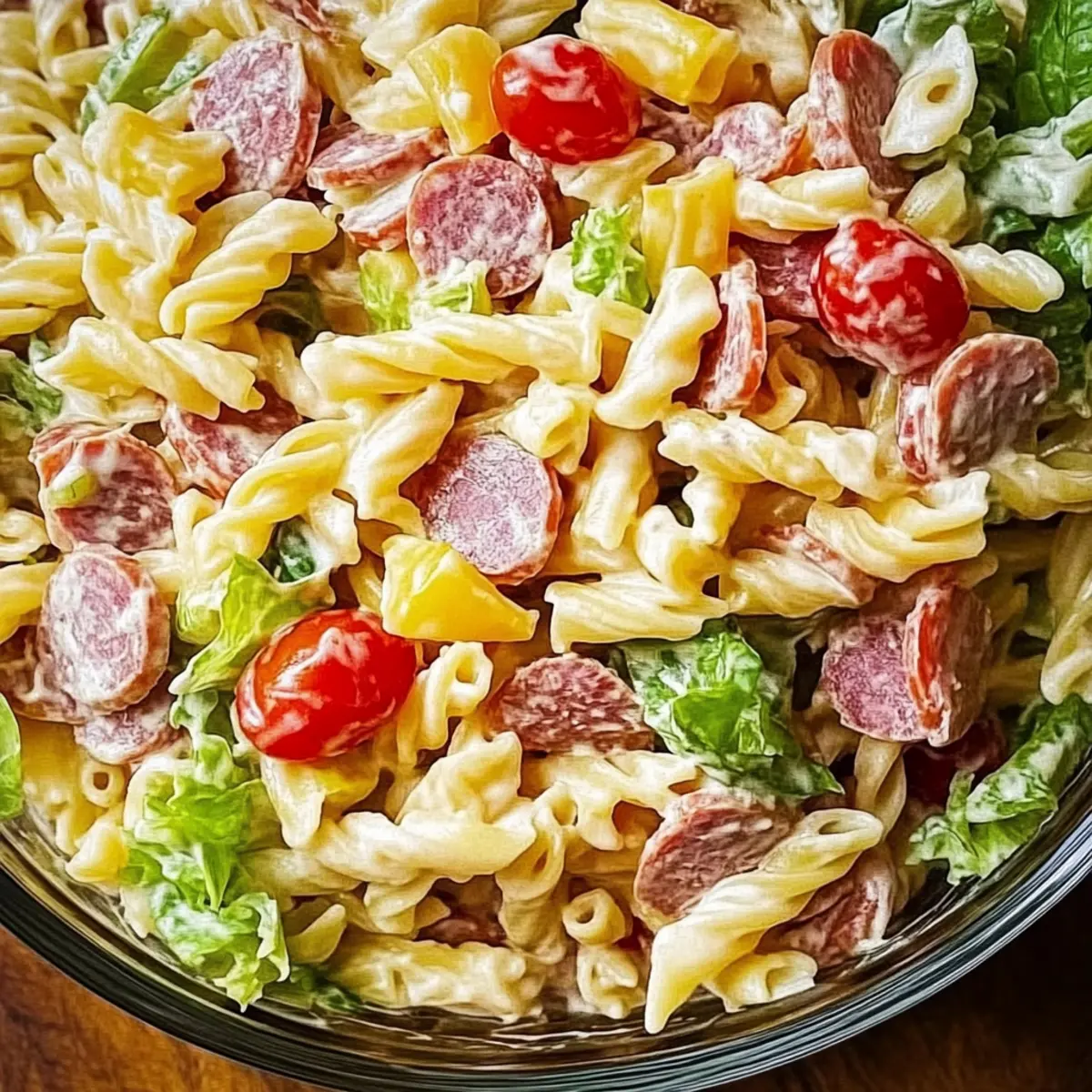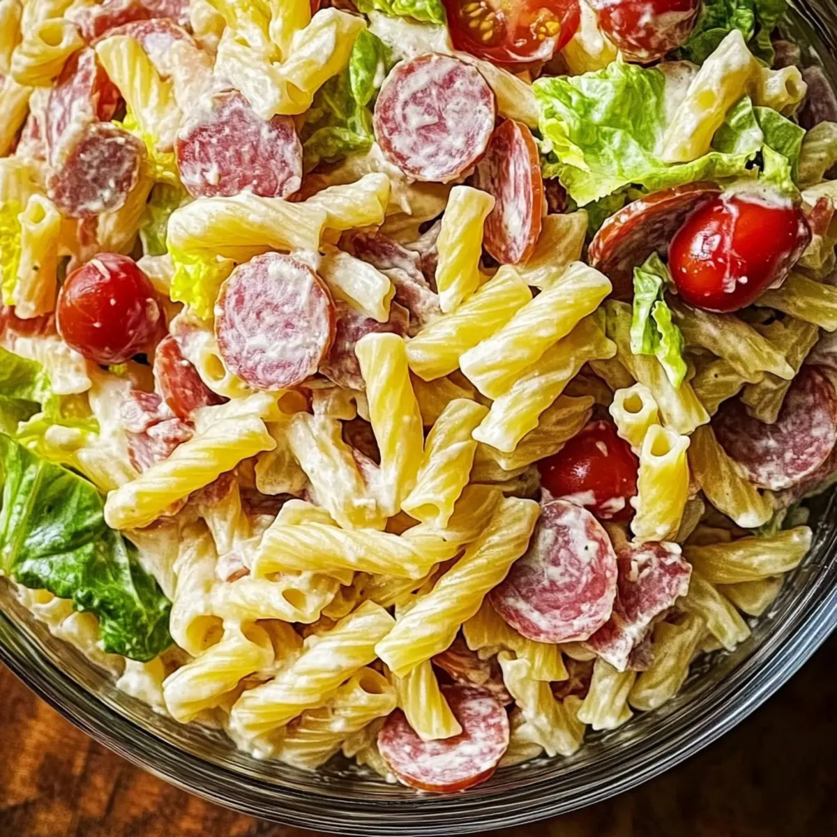 Vibrant Textures: The creamy dressing complements the crunch of fresh veggies and the bite of spicy pepperoni, creating a satisfying experience.