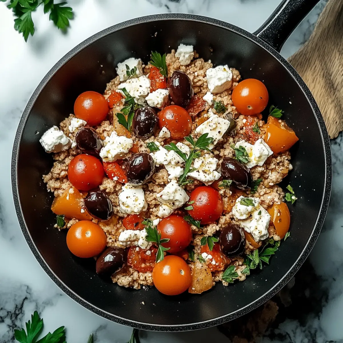 I often see folks overlook the garlic's cooking time. Garlic should be fragrant and tender; if it darkens, it can become bitter. Also, ensure the ground chicken is cooked entirely until no longer pink—this ensures your dish is both safe and delicious. Finally, don't forget to taste as you go, particularly when adding salt, since feta and olives already contribute saltiness!