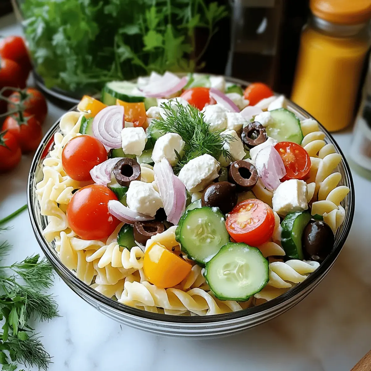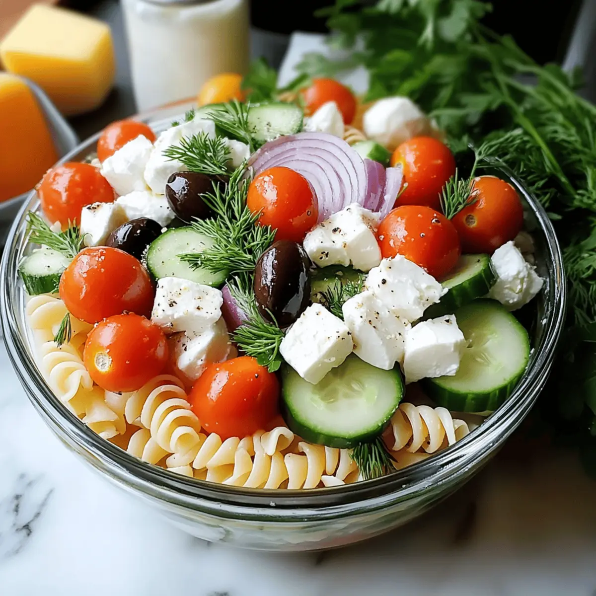 - Greek Yogurt Dip: Serve a cool, herby yogurt dip alongside pita chips for an irresistible crunch that complements the pasta salad nicely.