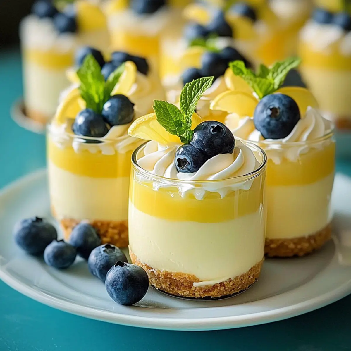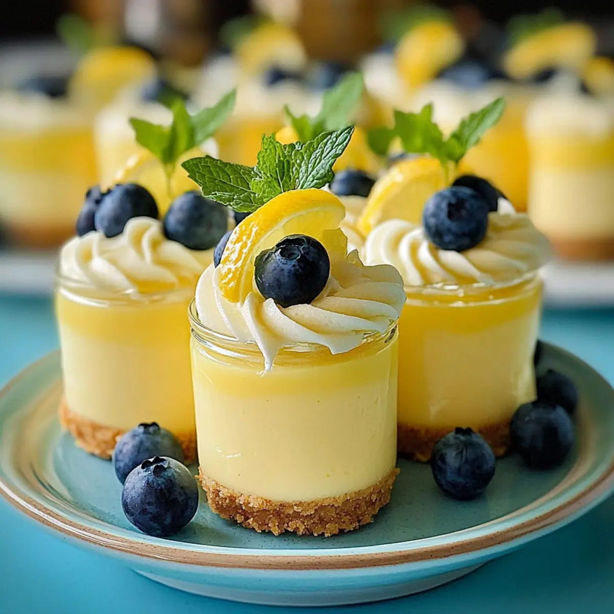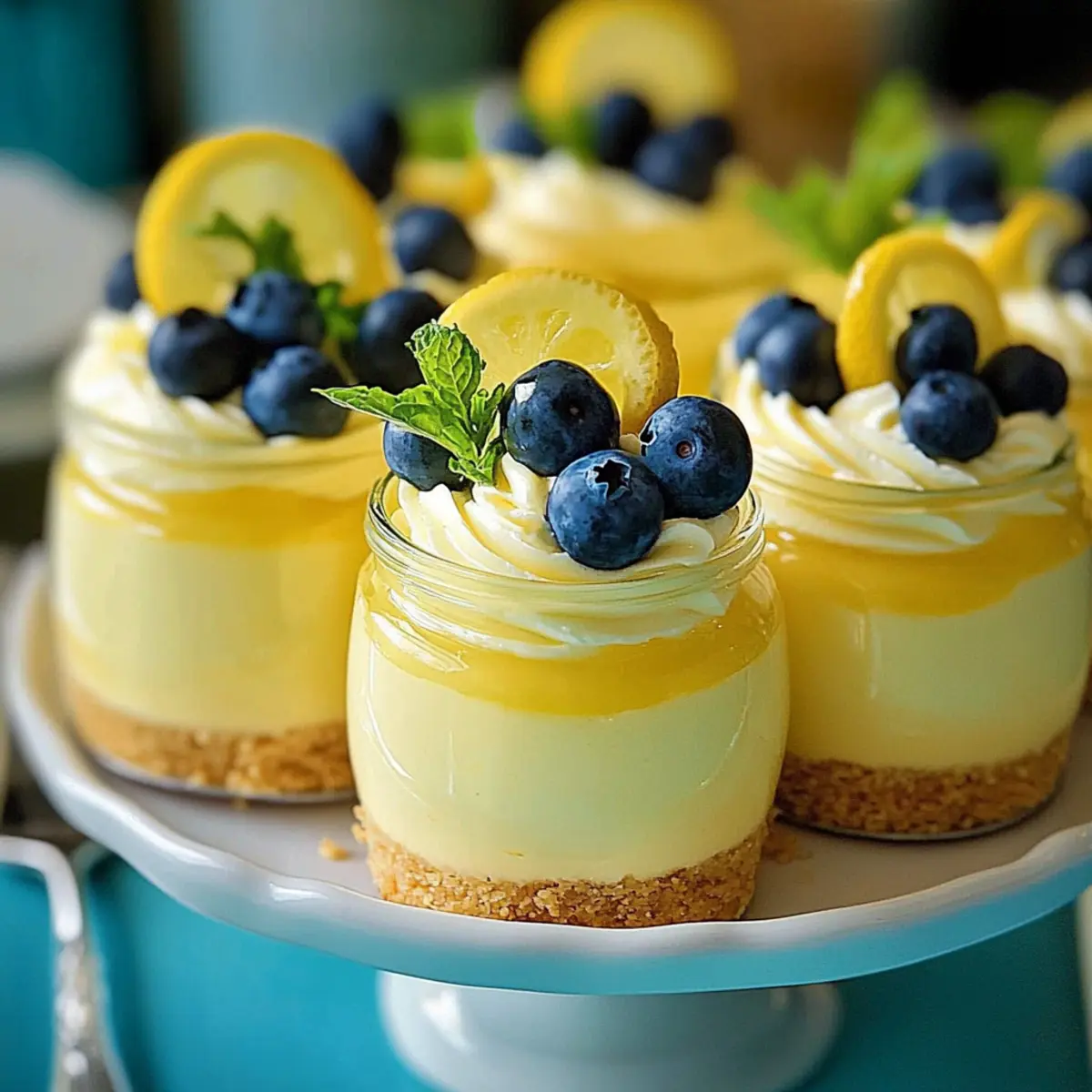 When you’re ready to serve, remove the mousse from the refrigerator and garnish each cup with a dollop of sweetened whipped cream, a slice of lemon wedge, a few fresh blueberries, and a sprig of mint for that perfect finishing touch. This vibrant presentation not only elevates the Lemon Cheesecake Mousse but also invites your guests to indulge in its refreshing flavor!