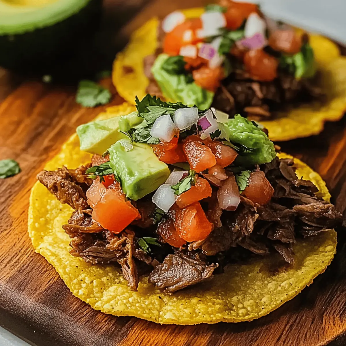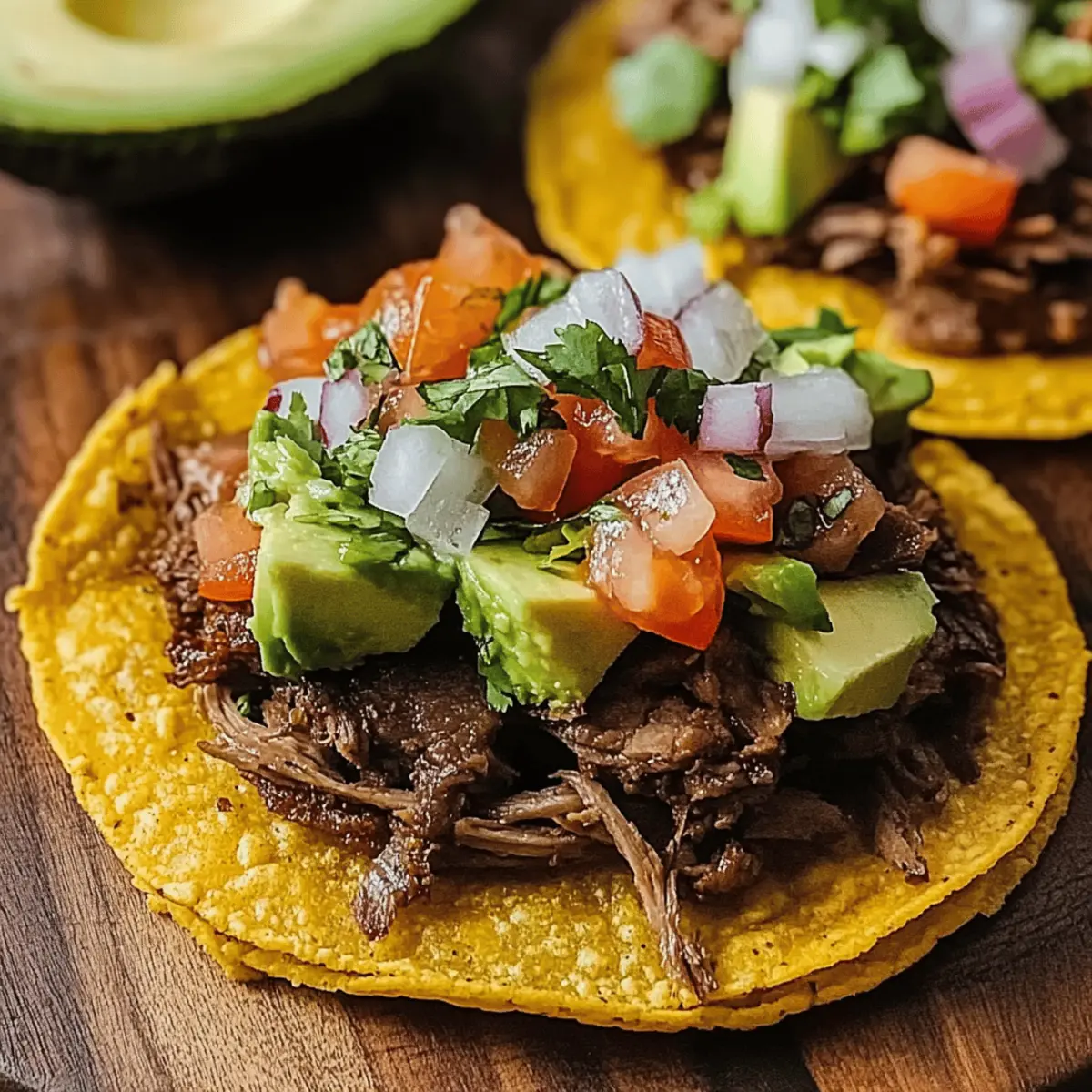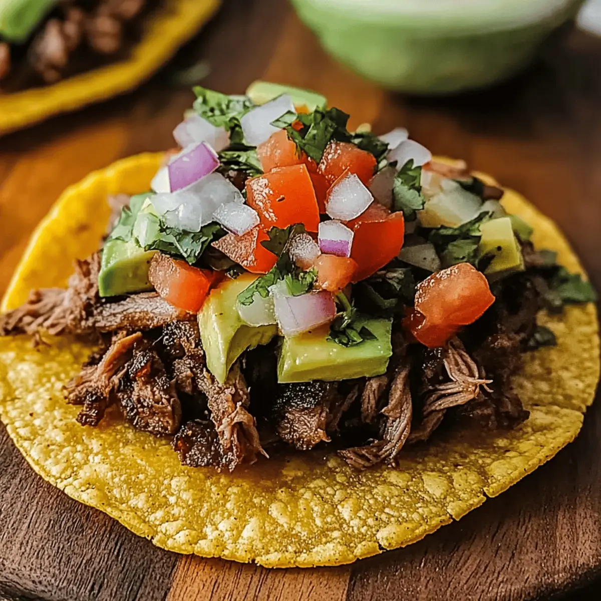 Eye-Catching Presentation: The vibrant colors from fresh ingredients, like diced tomatoes and cilantro, make these tostadas irresistible.