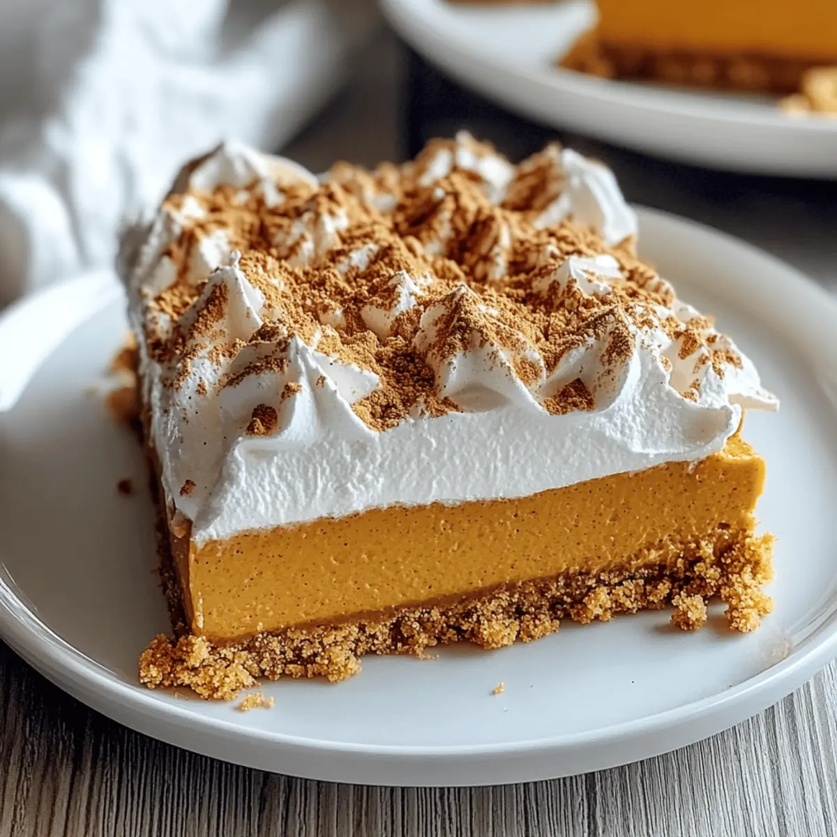 These No Bake Pumpkin Spice Delight desserts are perfect for meal prep enthusiasts! You can prepare the graham cracker crust and the creamy filling up to 24 hours in advance. Simply follow the first five steps of the recipe, then cover the dish and refrigerate it until you're ready to serve. To maintain the delightful texture, ensure that the whipped topping is folded in just before spreading the filling over the crust. When you're ready to enjoy, allow the dish to chill for at least 2 hours if prepped the day before or upgrade the flavor just before serving by adding the final garnishes like whipped topping, cinnamon, and crushed graham crackers for that extra touch. With these make ahead tips, you'll have a delicious dessert ready with minimal effort, perfect for those busy autumn days!