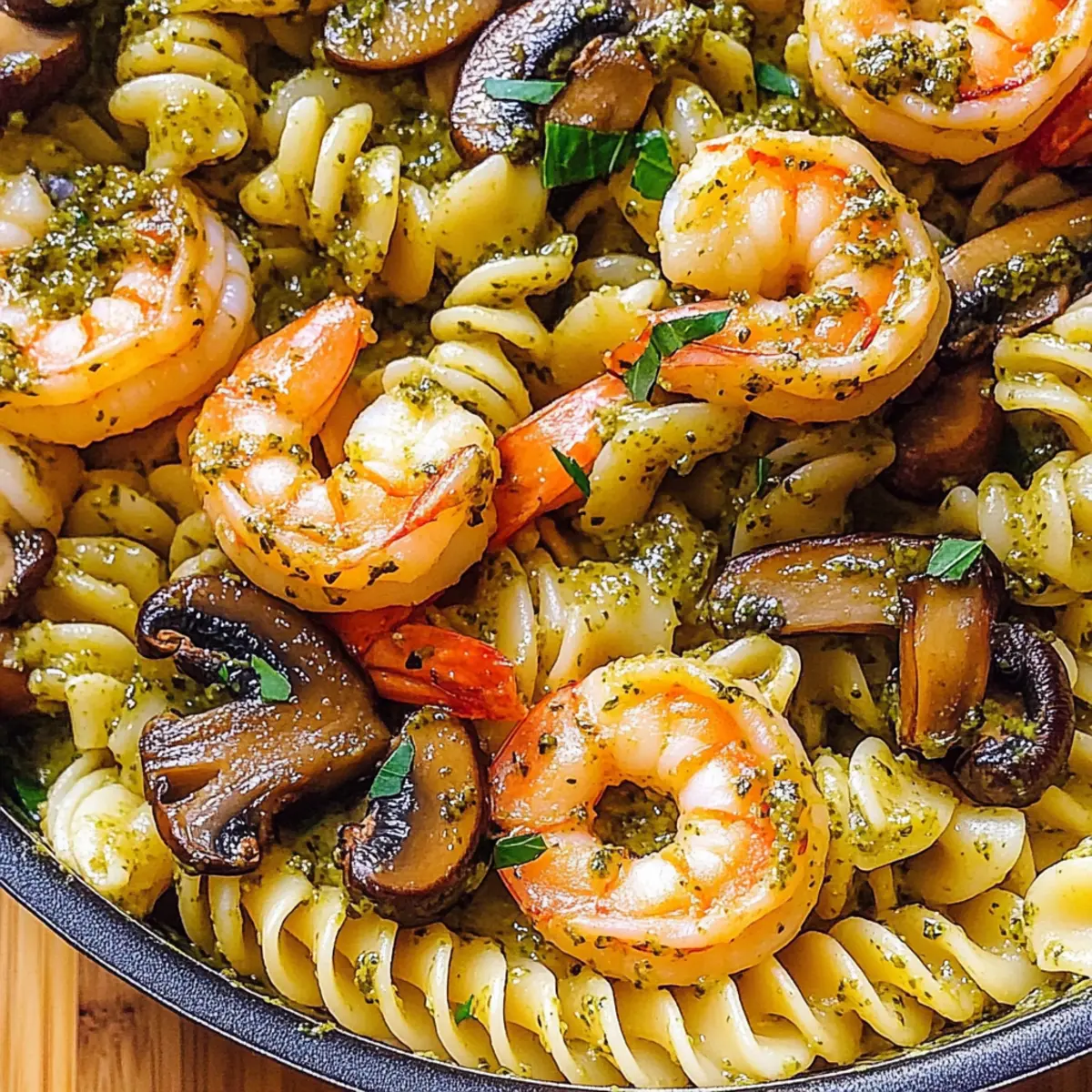 To finish your Pesto Shrimp Mushroom Pasta, sprinkle fresh chopped basil on top for an aromatic touch. This final step not only adds color but also enhances the dish’s overall freshness. Serve immediately while warm, allowing everyone to enjoy this colorful, creamy delight bursting with flavors.